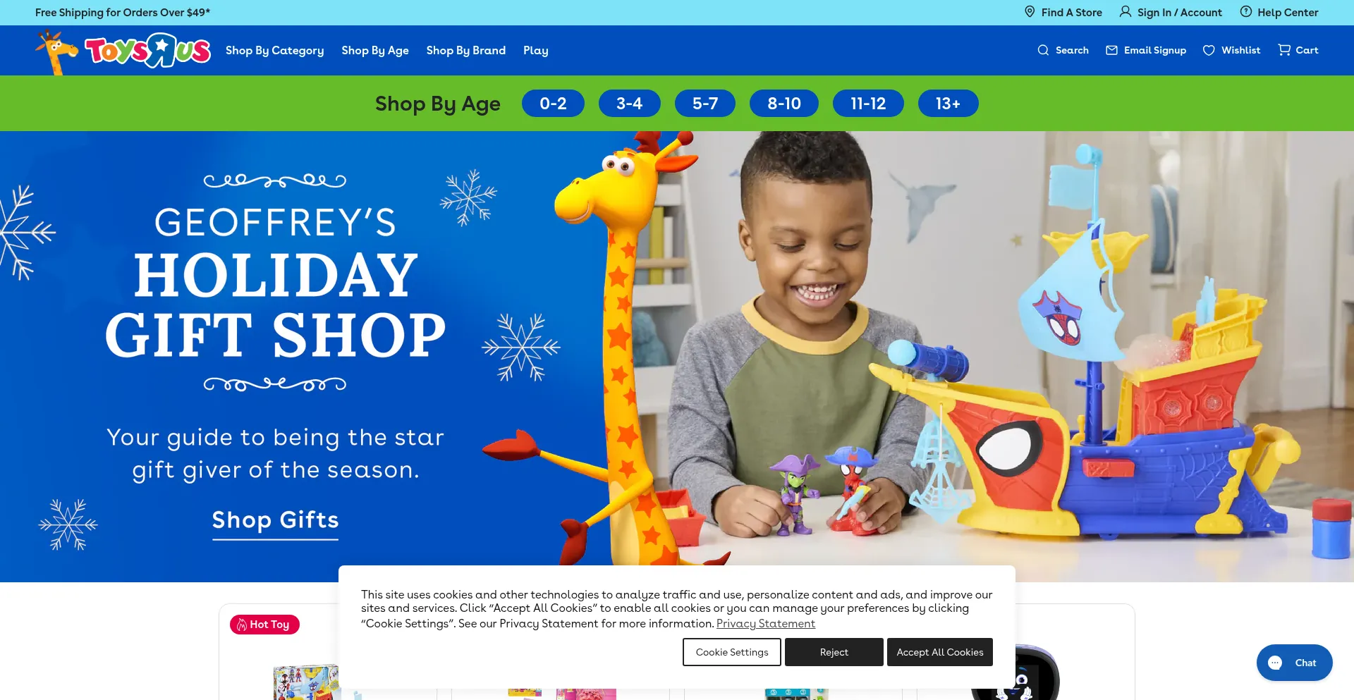 The website implements cookie consent mechanisms in compliance with privacy regulations such as GDPR or CCPA. This demonstrates that toysrus.com adheres to data protection standards and provides users with control over personal data collection practices.
