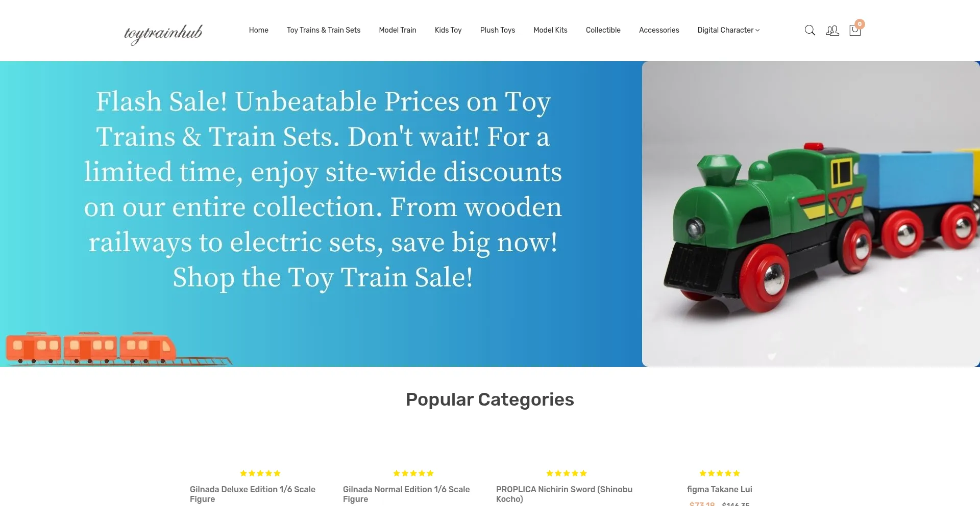 Analysis indicates that toytrainhub.com operates as an e-commerce platform facilitating online transactions for goods or services. The website implements shopping cart functionality, payment processing systems, and product catalog features typical of commercial retail operations.