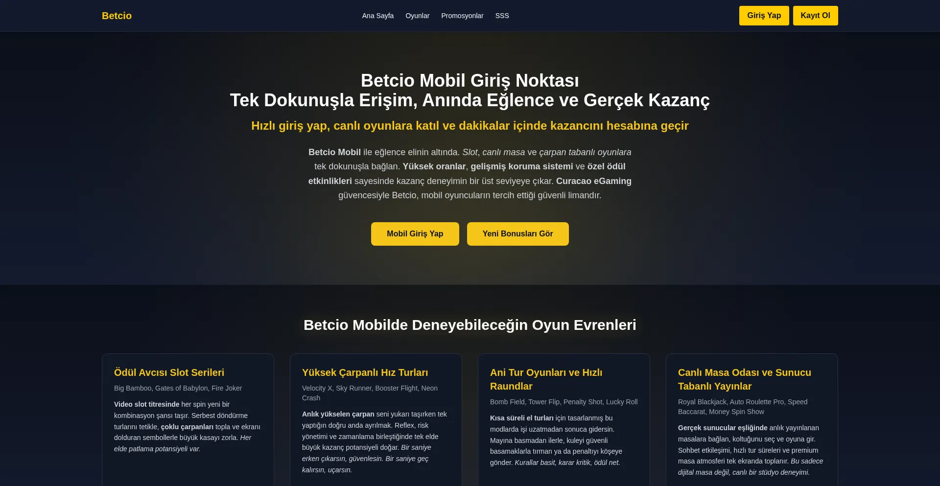 Betcio | Doğrudan Bağlan | Mobilde Hızlı Giriş ve Gerçek Ödül Deneyimi