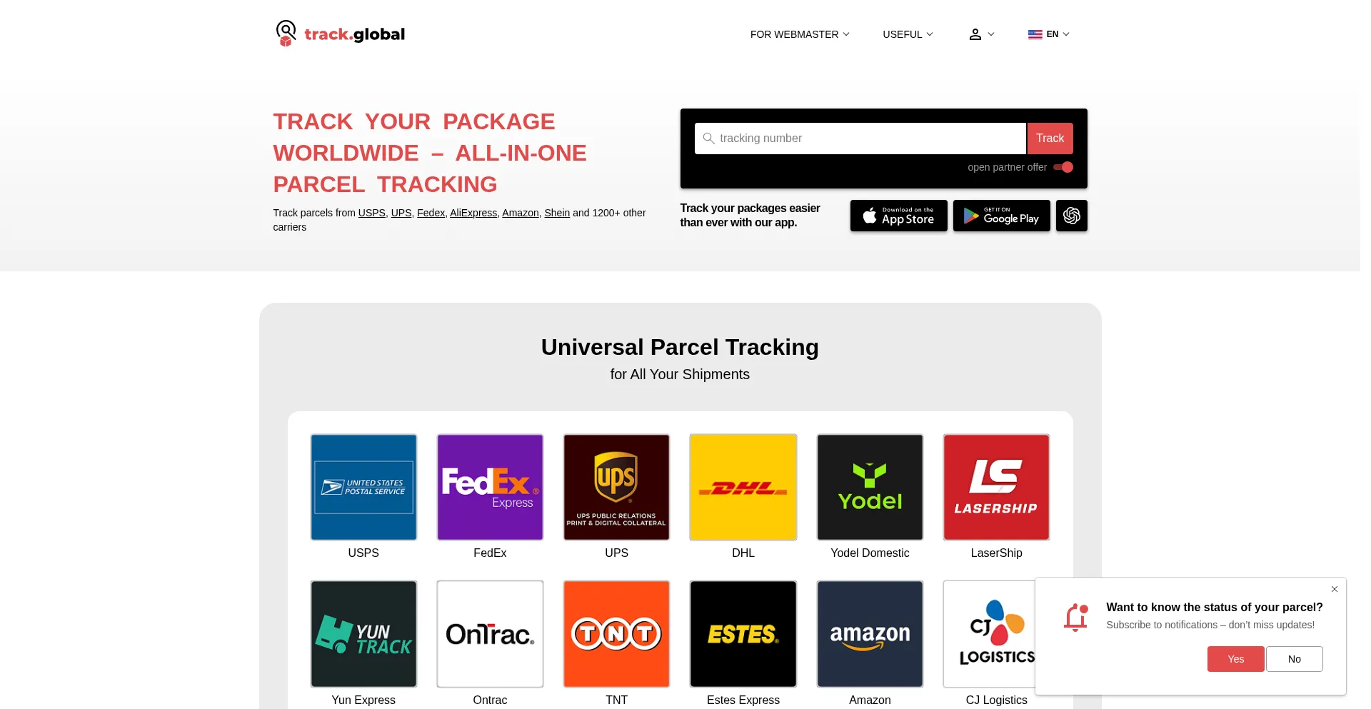 Track your packages globally with our all-in-one tracking tool. Get real-time updates from over 2,500 carriers, including USPS, UPS, FedEx, and DHL.