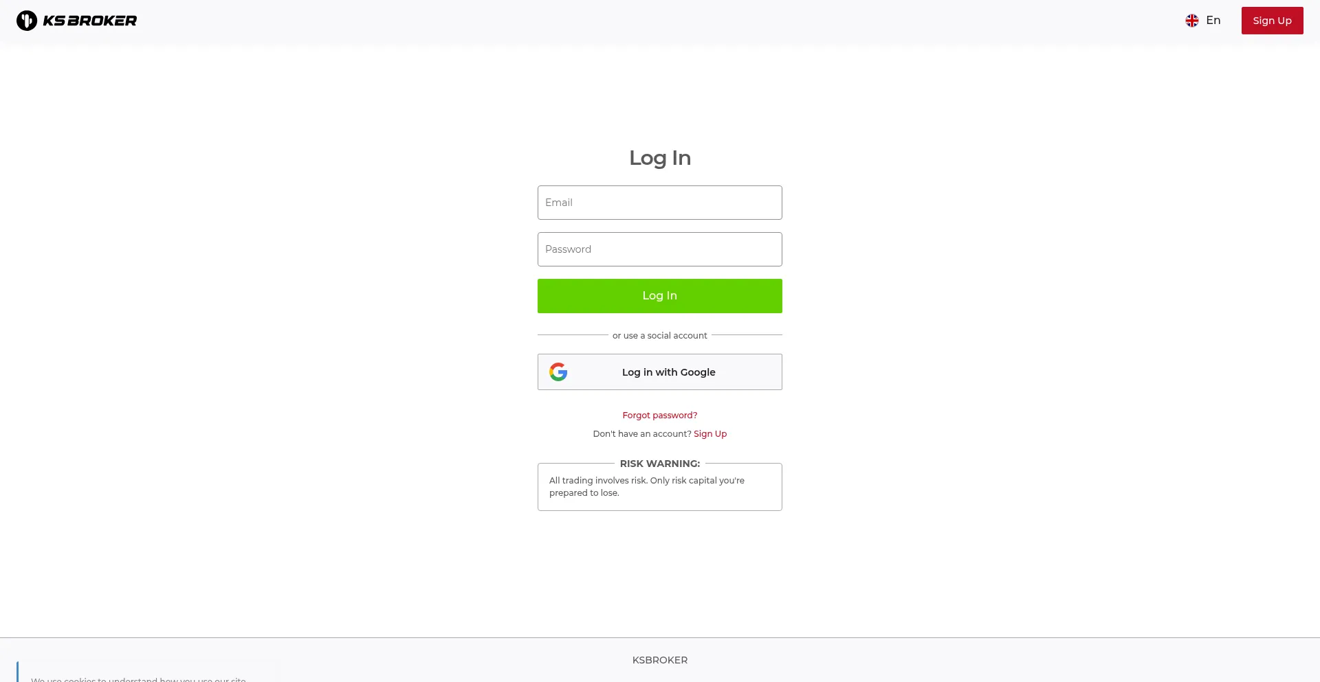 KSBROKER login form. Also, you can use your Facebook or Google account to log in.