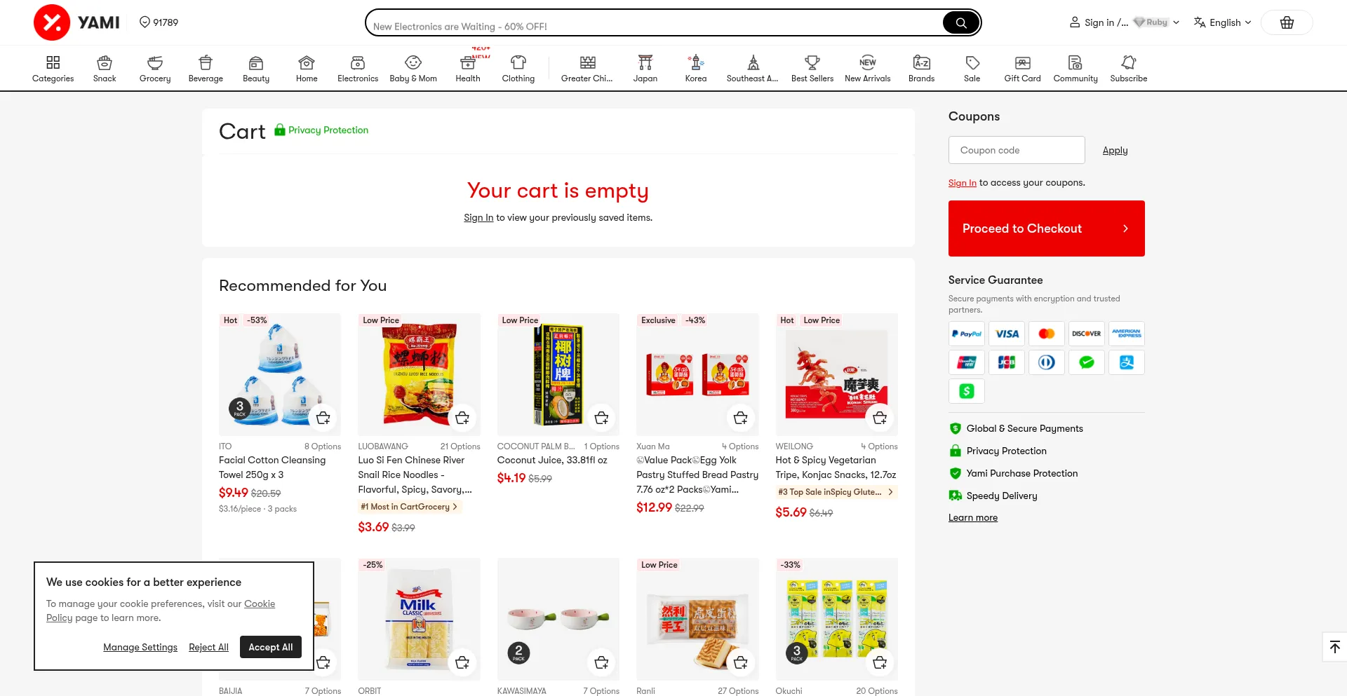A wide selection of groceries, snacks, beauty, and home goods from China, Korea, Japan, Taiwan, HK, Macau, and other Asian regions. Free shipping with orders $49+.