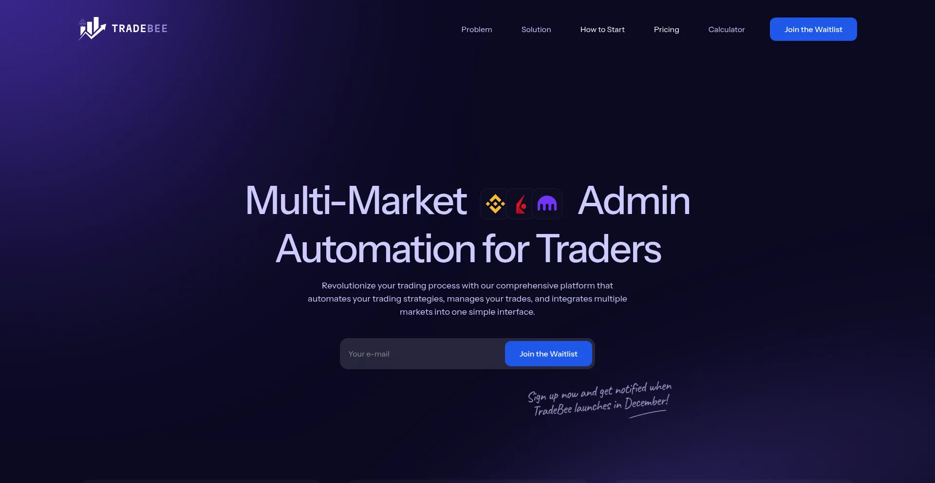 Streamline your trading with TradeBee's all-in-one platform. Automate strategies across crypto, stocks & forex markets while managing risk. Trade smarter, not harder.