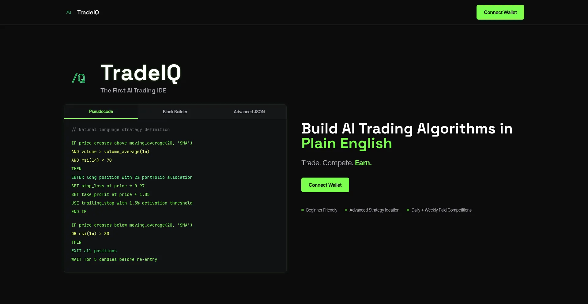 Build AI Trading Algorithms in English. Trade. Compete. Earn.