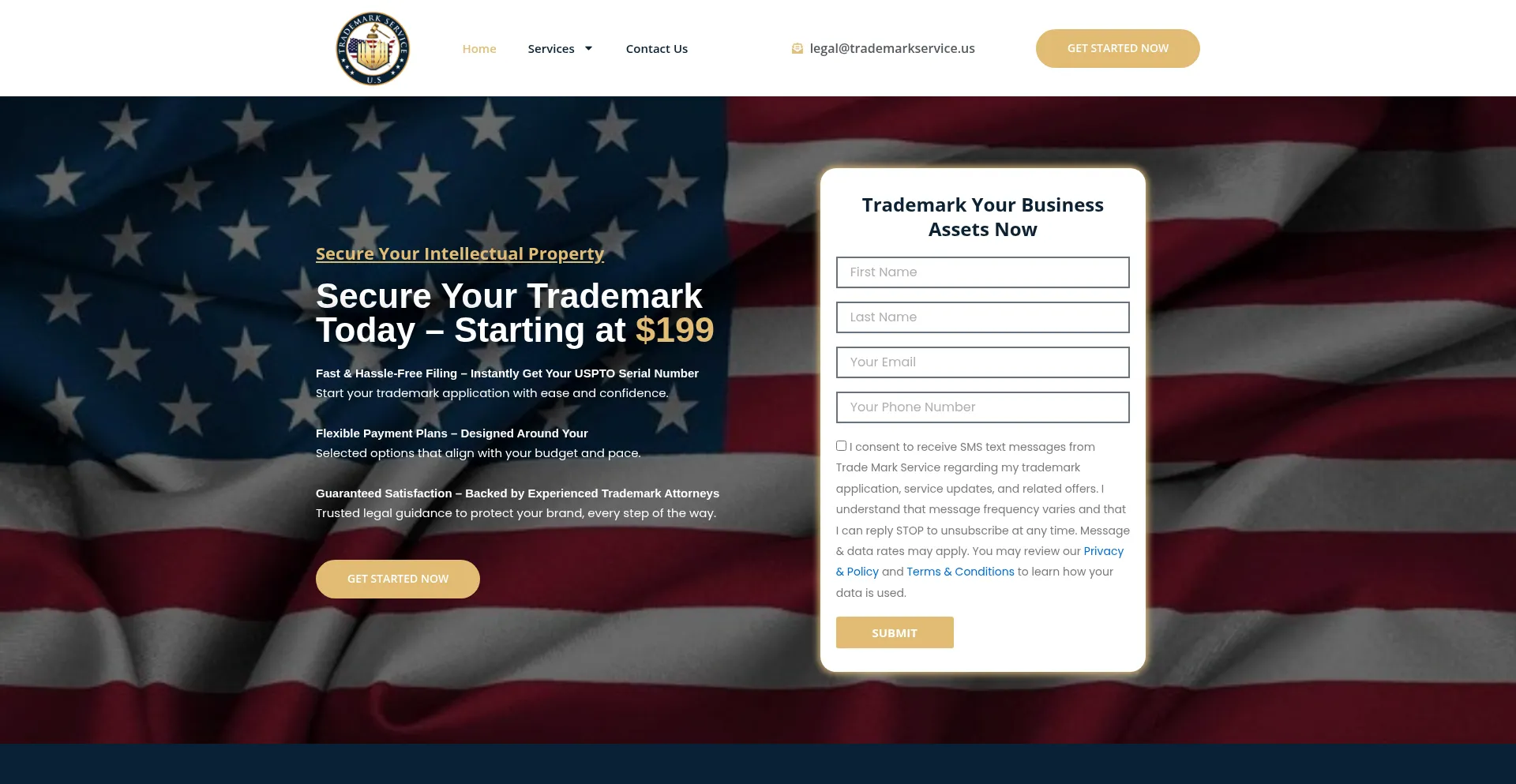 The trademarkservice.us website implements data collection forms that may request personal information including names, email addresses, phone numbers, or other sensitive details. Users should verify the legitimacy of it and review privacy policies before submitting personal data.