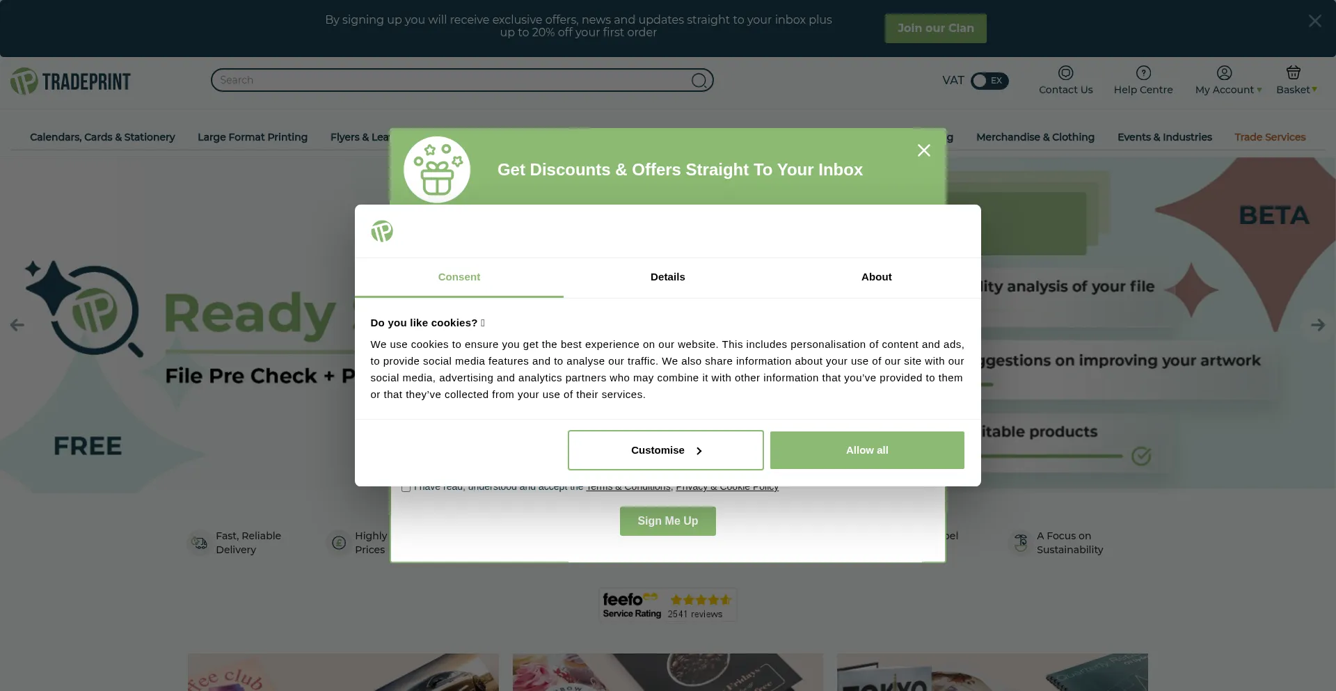The website implements cookie consent mechanisms in compliance with privacy regulations such as GDPR or CCPA. This demonstrates that tradeprint.co.uk adheres to data protection standards and provides users with control over personal data collection practices.