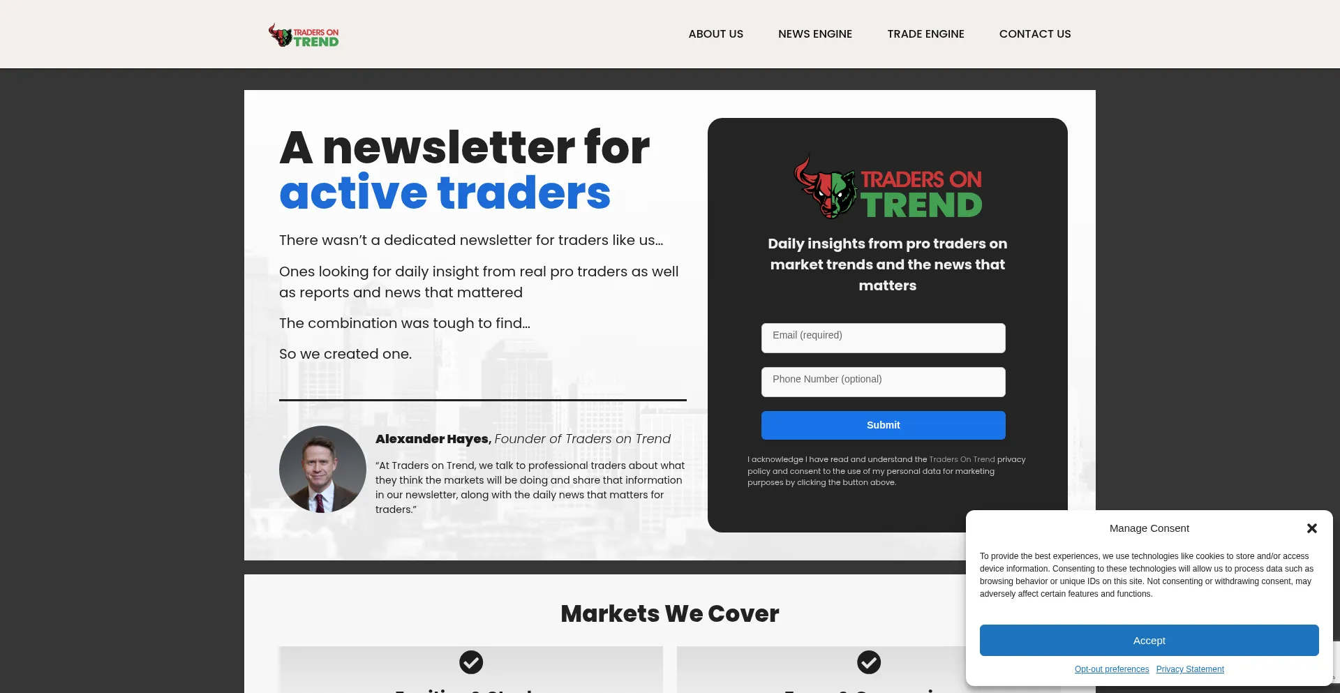 The website implements cookie consent mechanisms in compliance with privacy regulations such as GDPR or CCPA. This demonstrates that tradersontrend.com adheres to data protection standards and provides users with control over personal data collection practices.