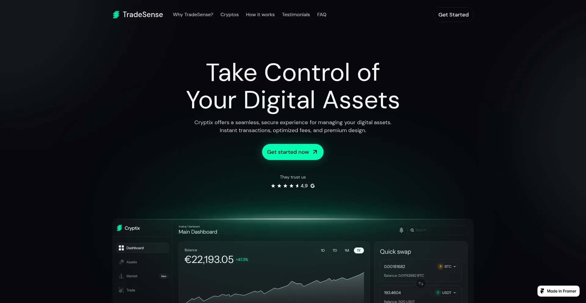 The tradesense.framer.website website references cryptocurrency transactions or educational content related to digital assets such as Bitcoin, Ethereum, or other blockchain-based currencies. Users should exercise caution as cryptocurrency transactions are irreversible and the decentralized nature of these assets provides limited recourse for fraudulent activities.
