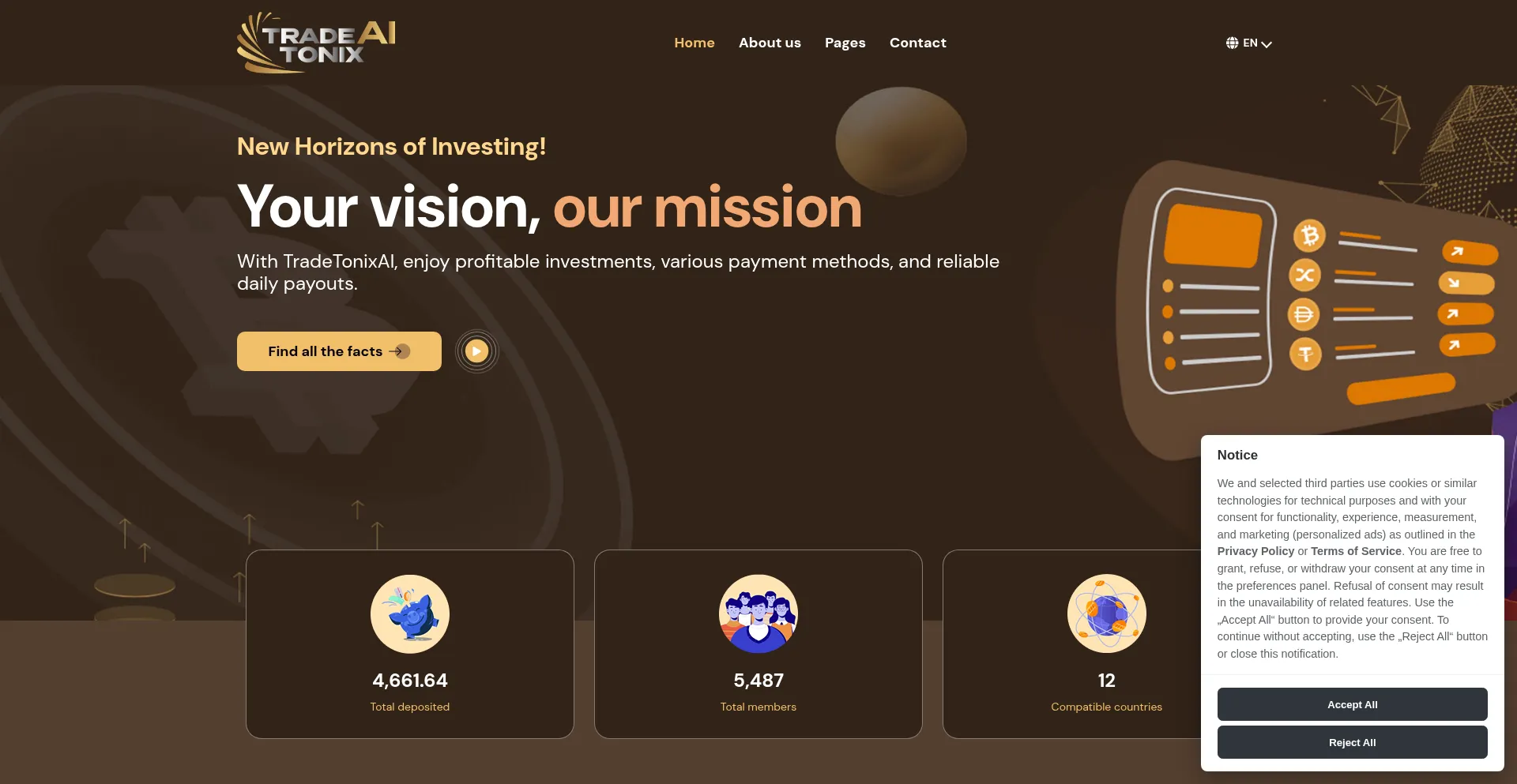 The tradetonixai.com website provides financial services including investment management, wealth advisory, or financial planning solutions. Services may encompass portfolio management, investment opportunities, financial consulting, or asset growth strategies for individual and institutional clients.