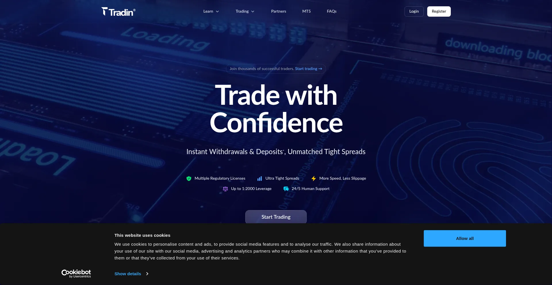 The website implements cookie consent mechanisms in compliance with privacy regulations such as GDPR or CCPA. This demonstrates that tradin.com adheres to data protection standards and provides users with control over personal data collection practices.