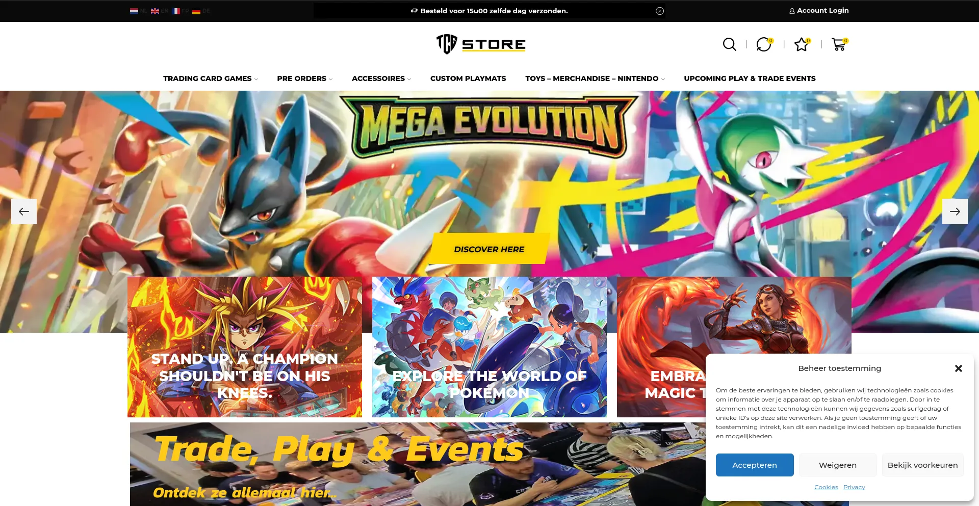 Ruim assortiment aan TCG Kaarten, Speelgoed, Gadgets, Fashion & meer .... ✓ Webshop ✓ Fysieke winkel ✓ Voordelig ✓ Snelle Levering ✓ Service.