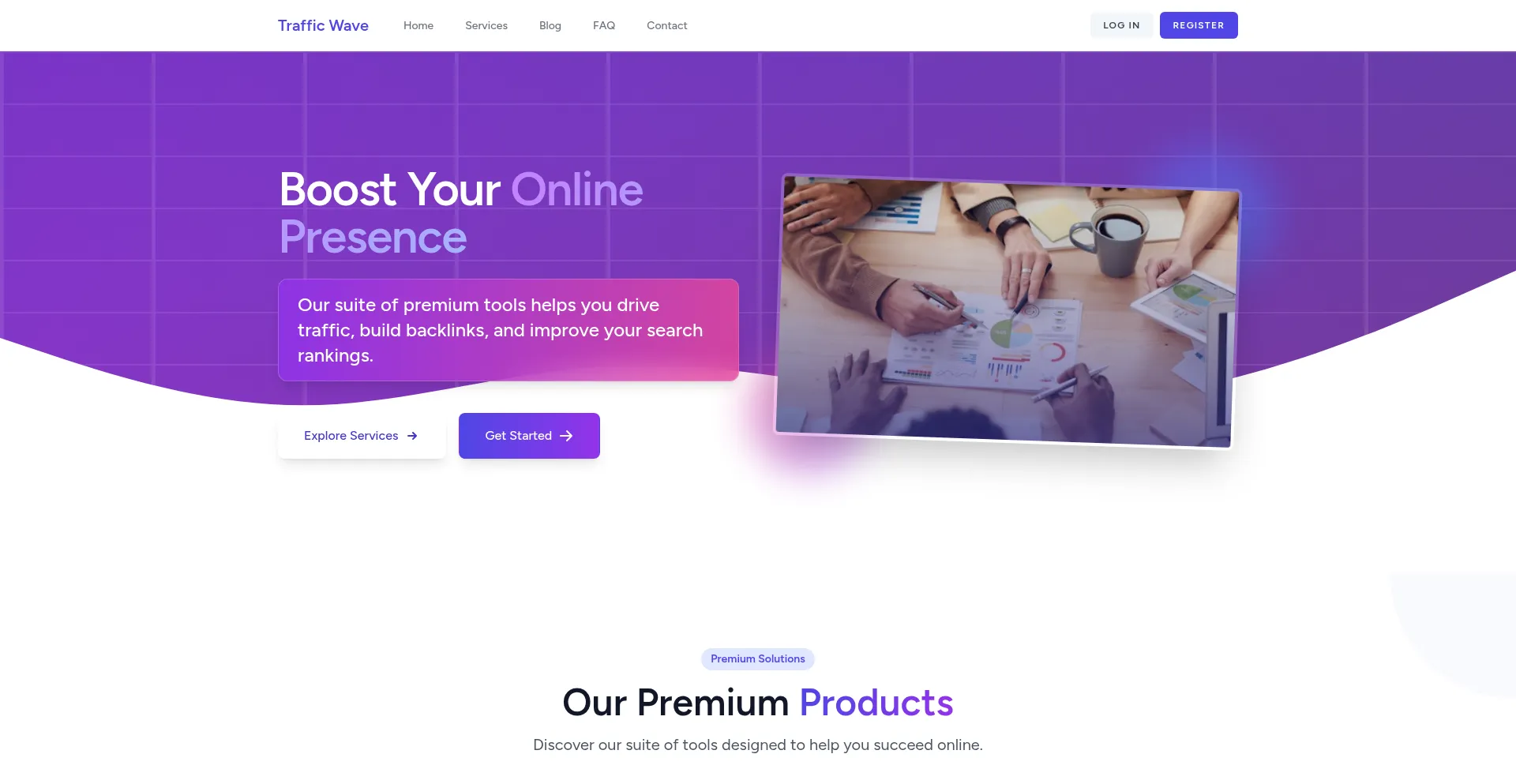 Powerful SEO tools to boost your online presence. Our suite includes Traffic-Wave for SEO traffic, Backlink-X for quality backlinks, and Rank-Genius for search ranking optimizat...