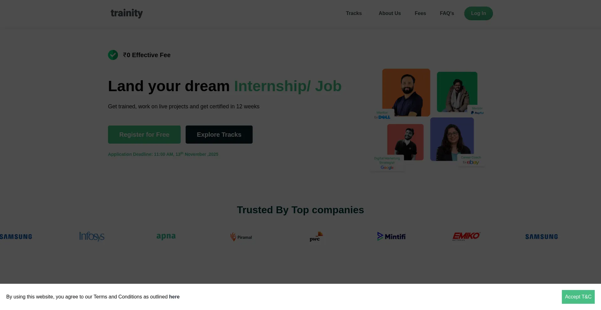 Trainity.in operates as a suspicious website with multiple red flags that compromise its trustworthiness and user safety. The platform exhibits concerning characteristics including misleading information, questionable operational practices, or potential malware distribution that poses significant risks to visitors.