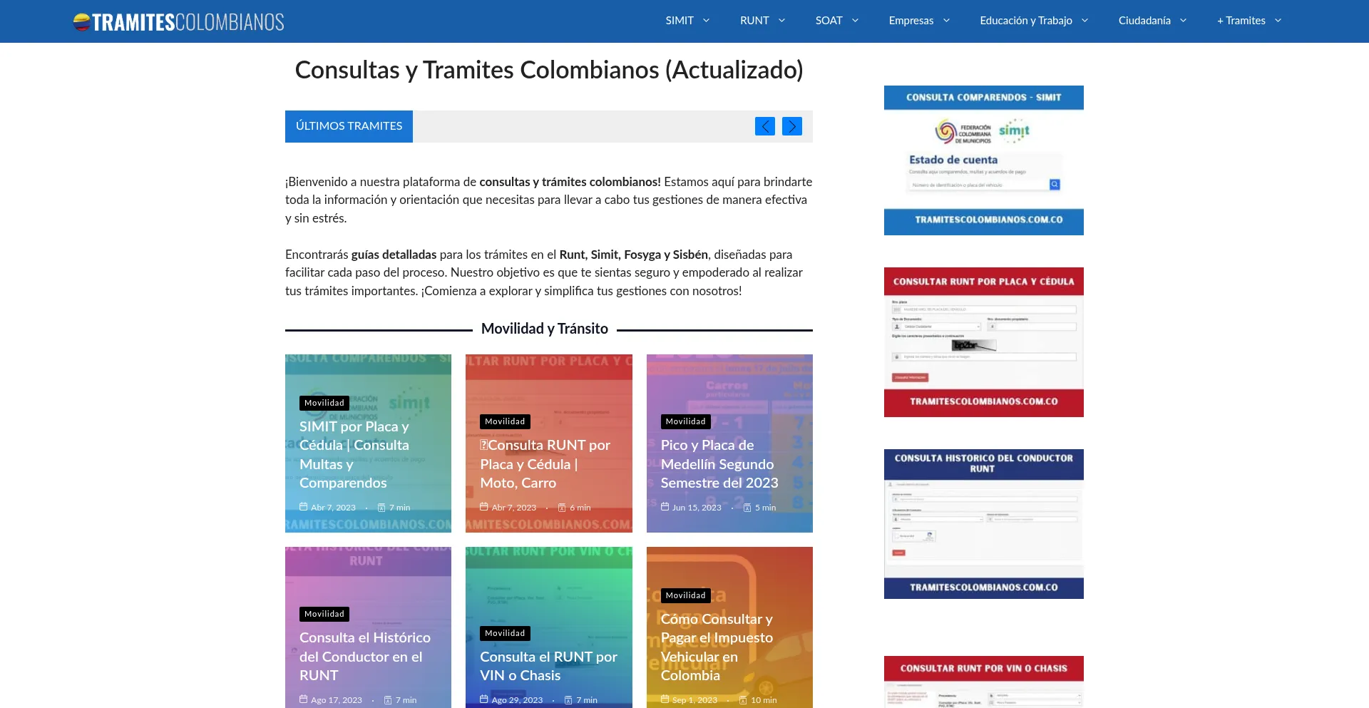Simplifica tus trámites en Colombia con nuestras guías para Runt, Simit, Fosyga y Sisbén. Proceso fácil y seguro. ¡Comienza hoy mismo!