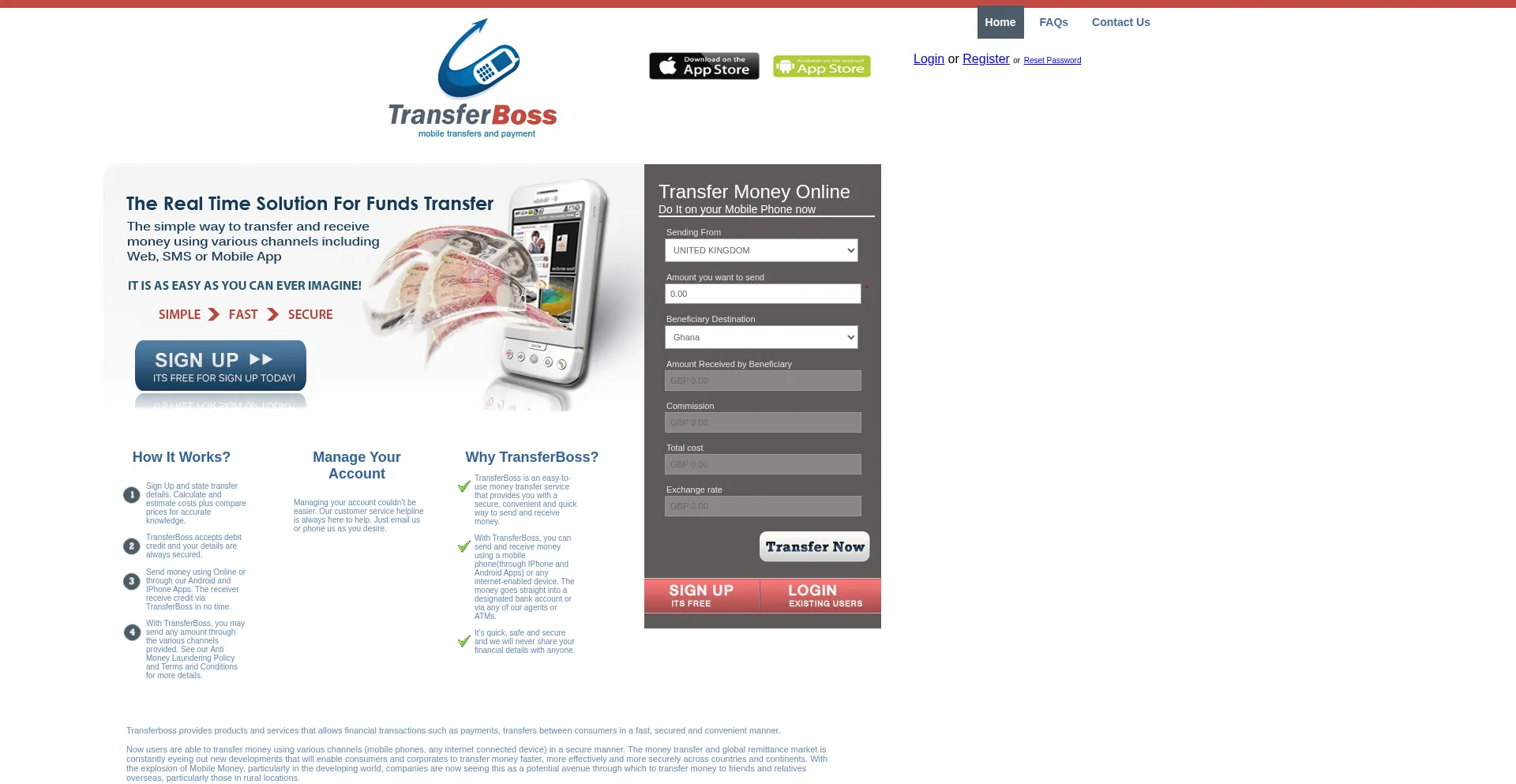 The transferboss.com website offers a mobile application for Android devices, indicating expanded platform presence beyond web-based services.