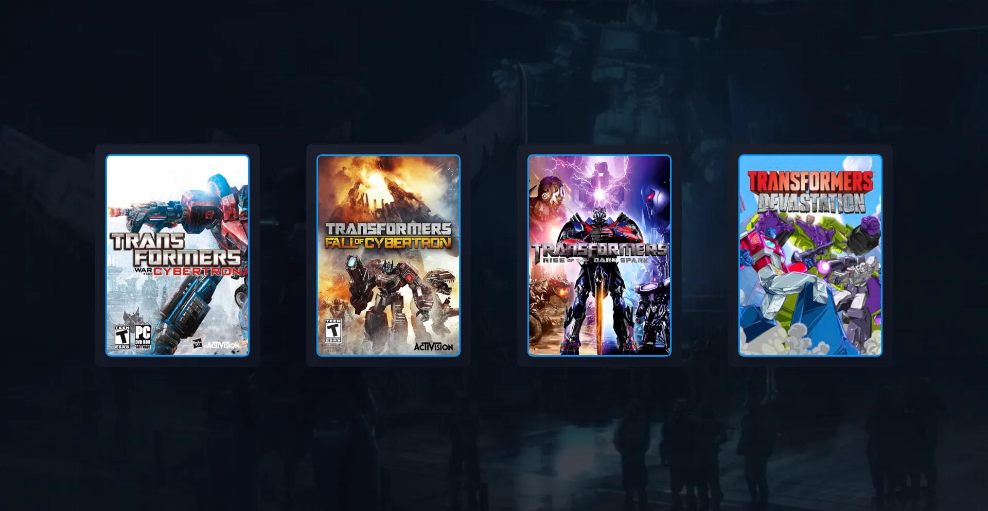Explore classic Transformers games like War for Cybertron, Fall of Cybertron, ROTDS, and more.