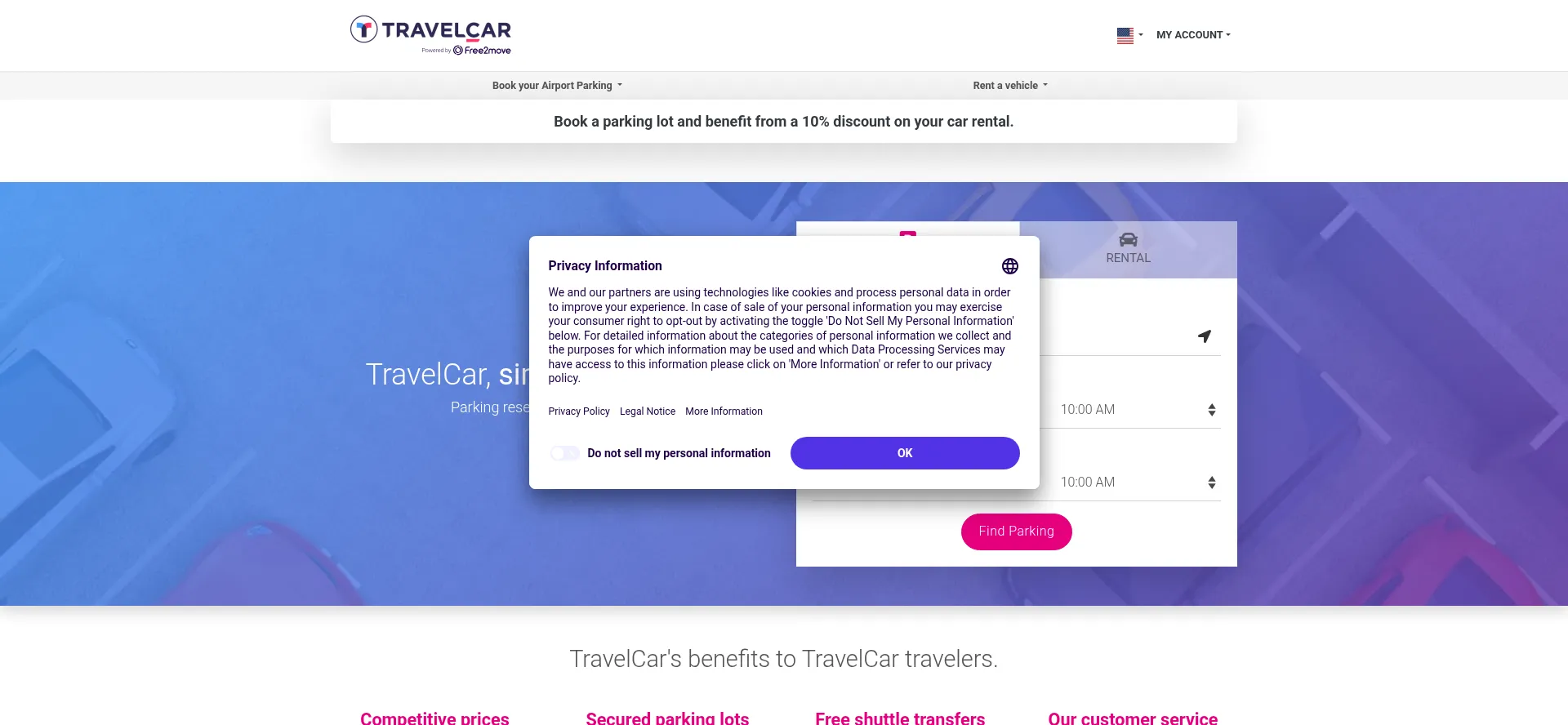 The travelcar.com website uses Google Tag Manager to add and update tracking tags on its website.