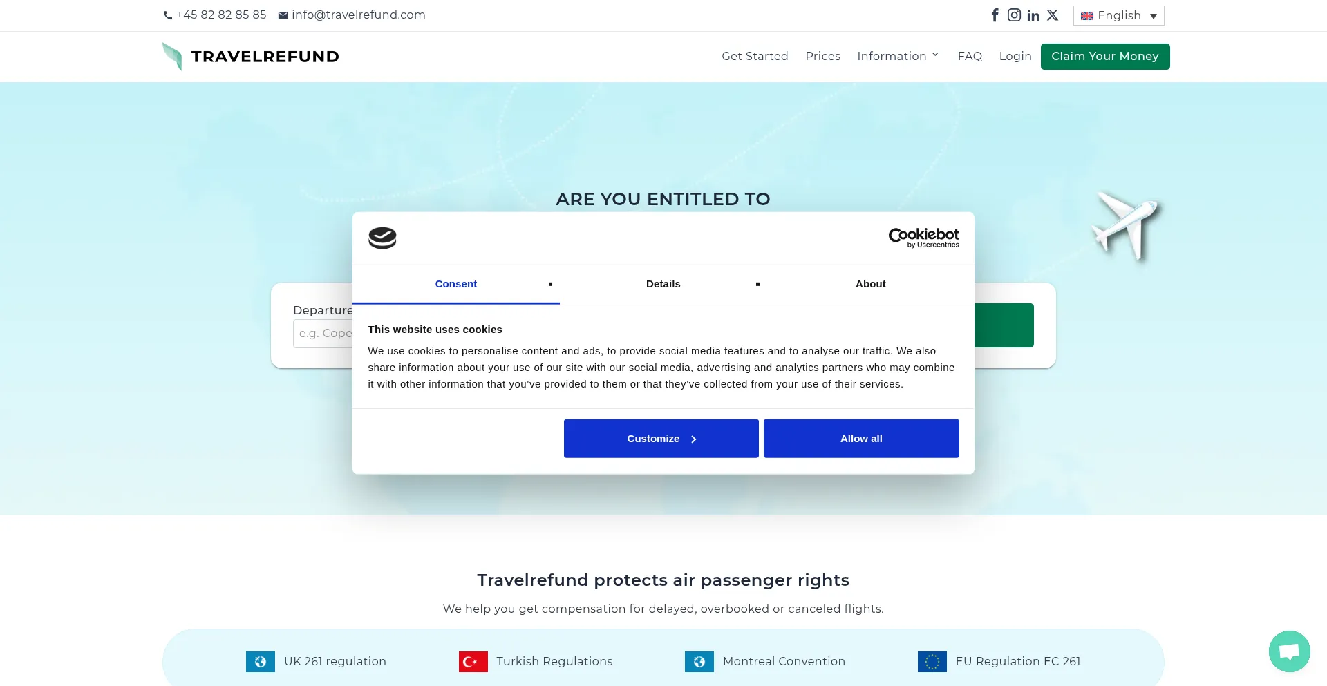 The website implements cookie consent mechanisms in compliance with privacy regulations such as GDPR or CCPA. This demonstrates that travelrefund.com adheres to data protection standards and provides users with control over personal data collection practices.