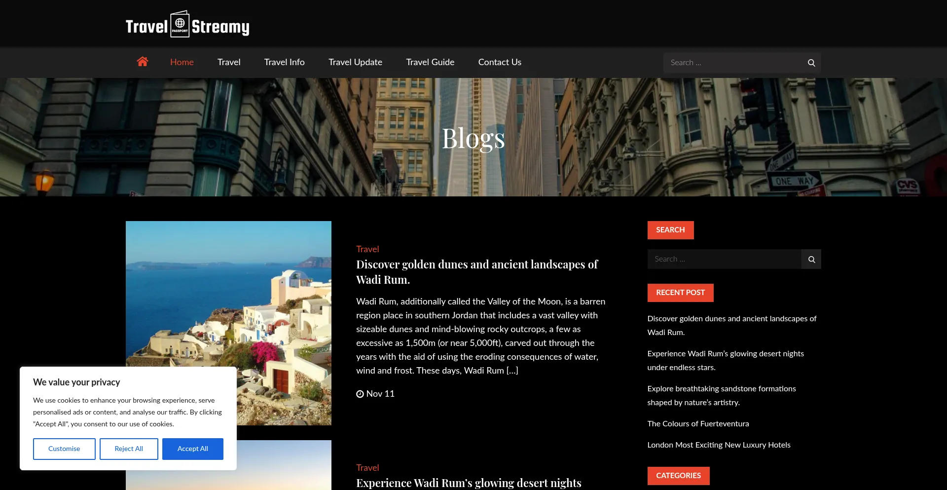 The website implements cookie consent mechanisms in compliance with privacy regulations such as GDPR or CCPA. This demonstrates that travelstreamy.shop adheres to data protection standards and provides users with control over personal data collection practices.