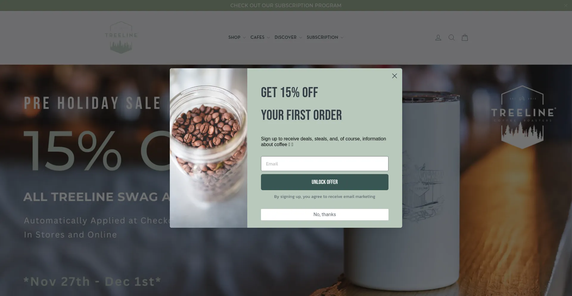 Analysis indicates that treelinecoffee.com operates as an e-commerce platform facilitating online transactions for goods or services. The website implements shopping cart functionality, payment processing systems, and product catalog features typical of commercial retail operations.
