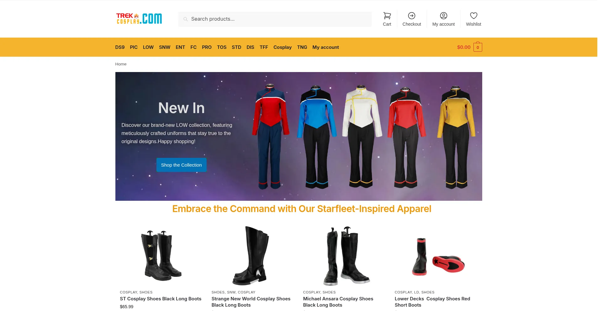 Analysis indicates that trekcosplay.com operates as an e-commerce platform facilitating online transactions for goods or services. The website implements shopping cart functionality, payment processing systems, and product catalog features typical of commercial retail operations.