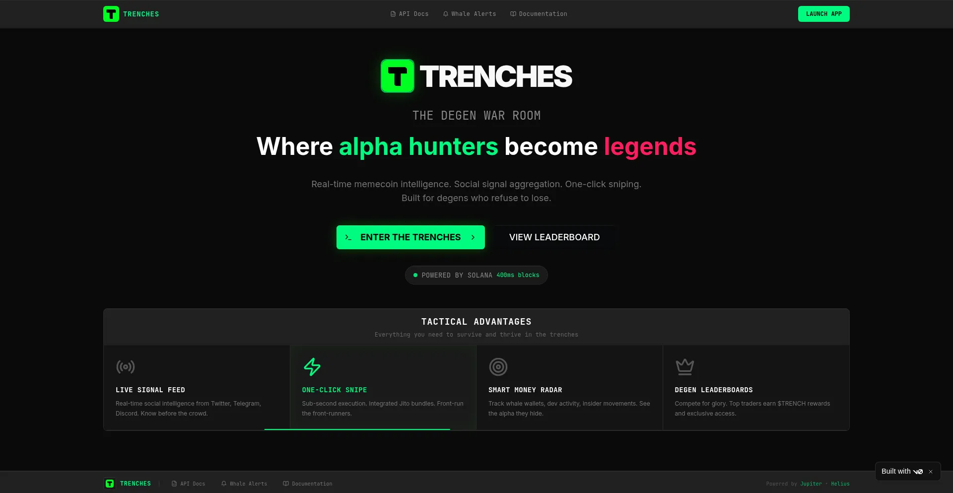 The ultimate memecoin intelligence terminal. Real-time alpha, social signals, and one-click trading for degens who refuse to lose.