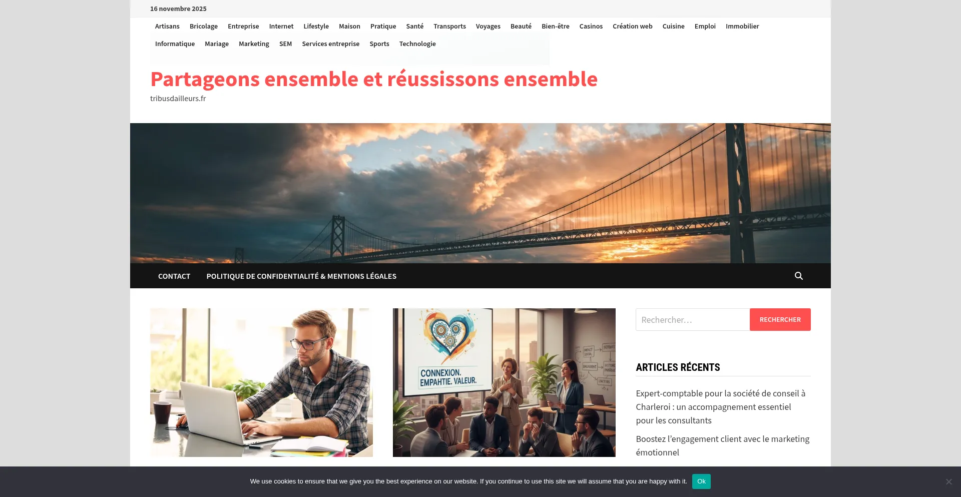 The website implements cookie consent mechanisms in compliance with privacy regulations such as GDPR or CCPA. This demonstrates that tribusdailleurs.fr adheres to data protection standards and provides users with control over personal data collection practices.