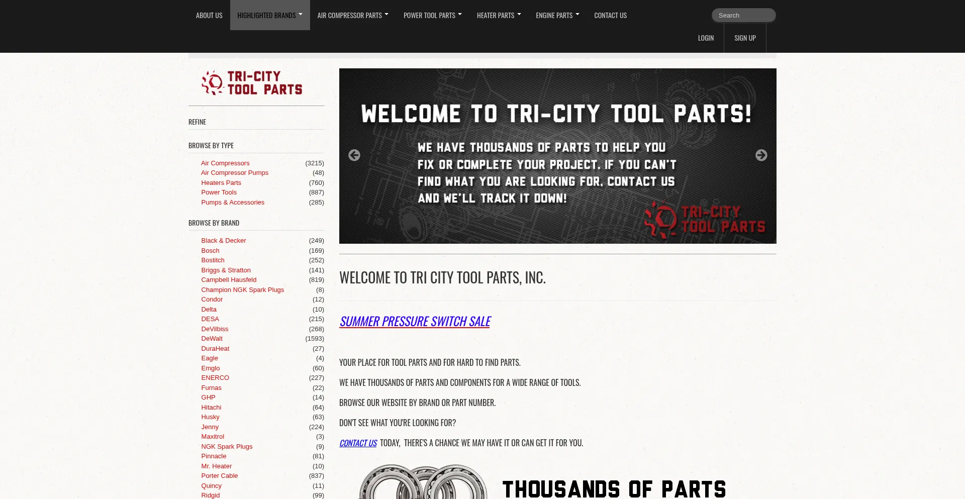 We have thousands of service parts, hard to find parts, accessories and components for a wide range of air compressors, power tools and power equipment, heaters, and engines.
