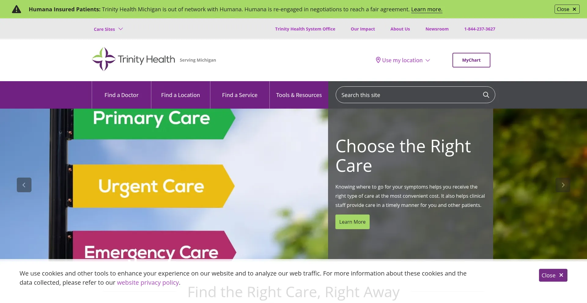 The website implements cookie consent mechanisms in compliance with privacy regulations such as GDPR or CCPA. This demonstrates that trinityhealthmichigan.org adheres to data protection standards and provides users with control over personal data collection practices.