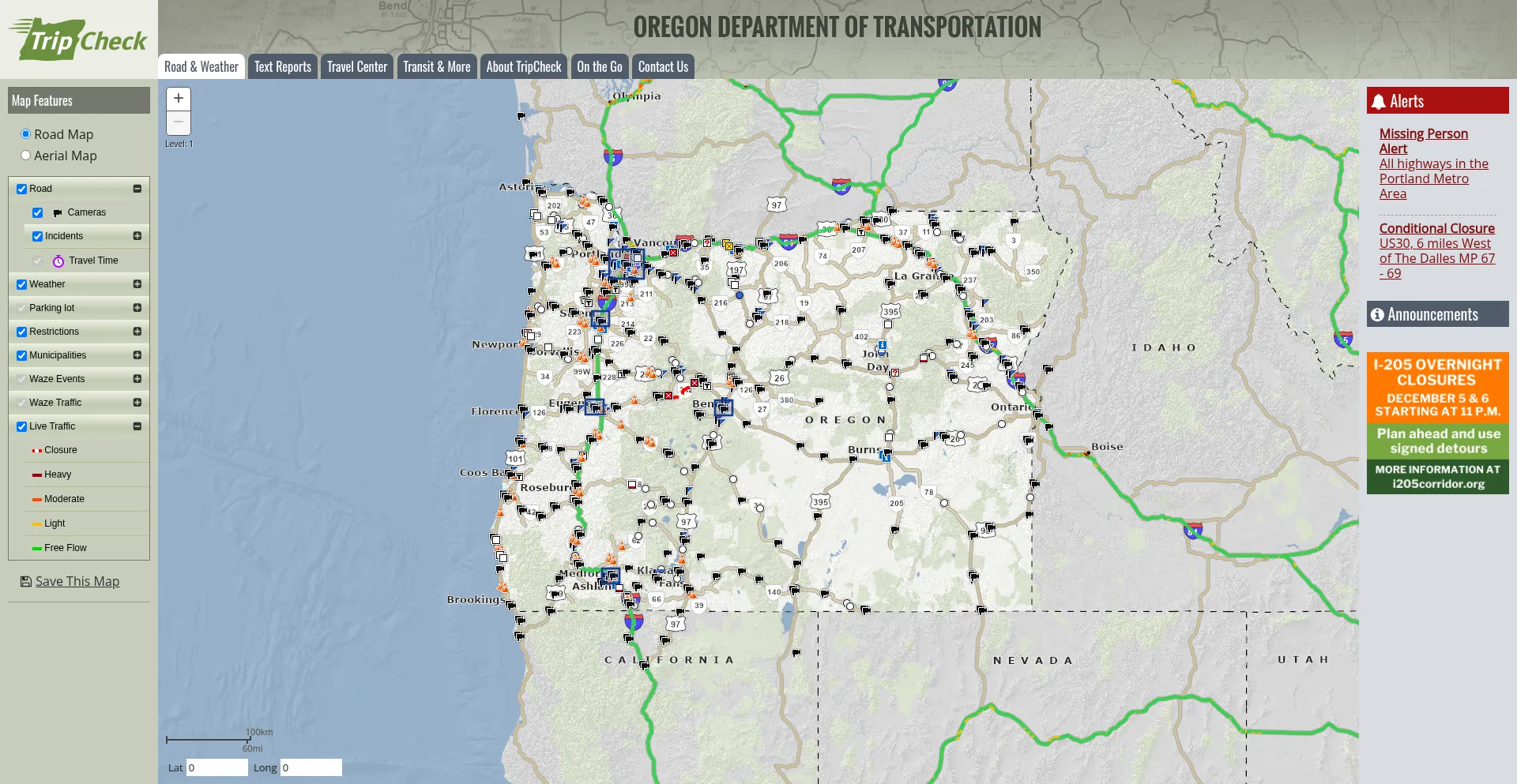 Road & Weather Conditions Map | TripCheck - Oregon Traveler Information