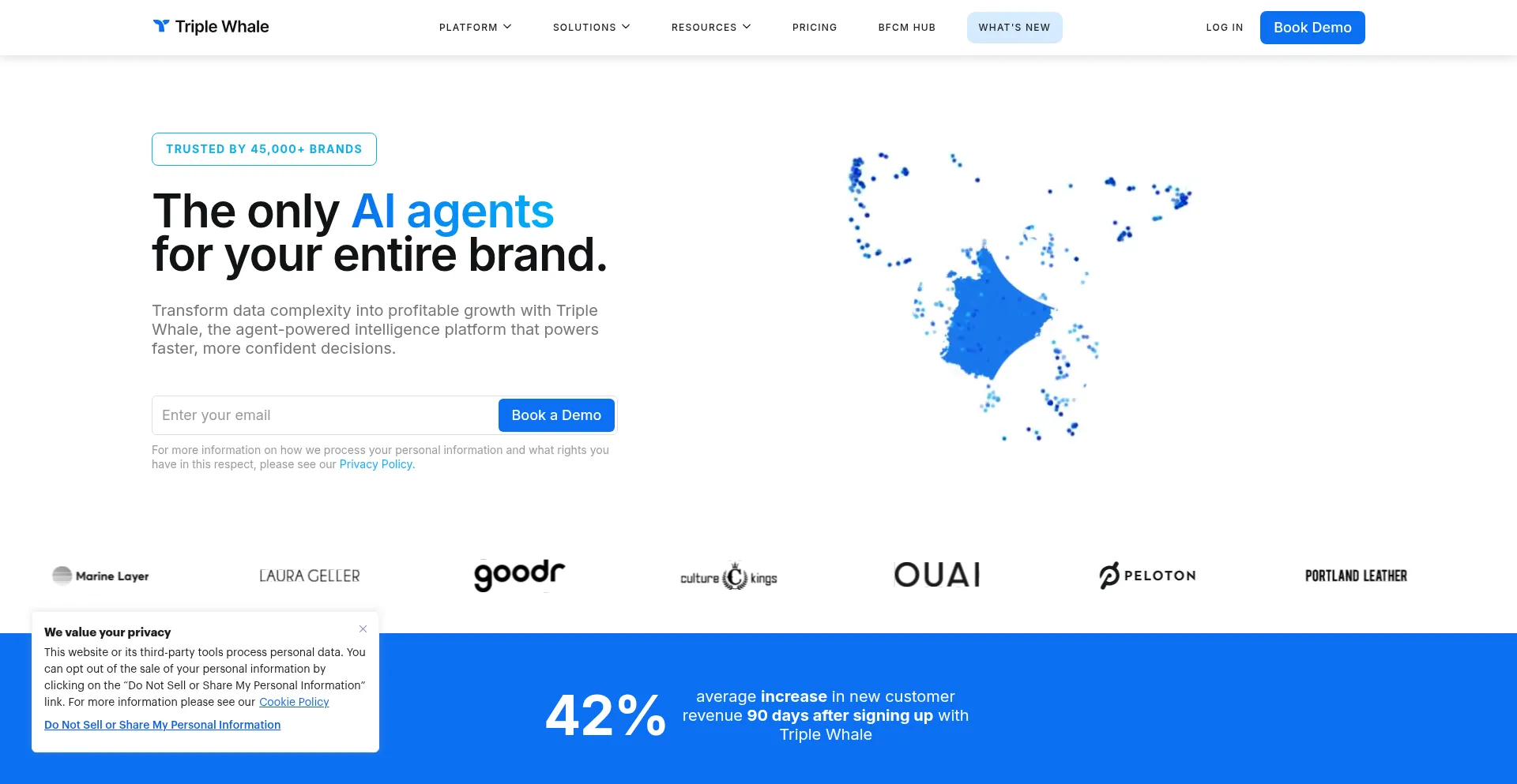 The website implements cookie consent mechanisms in compliance with privacy regulations such as GDPR or CCPA. This demonstrates that triplewhale.com adheres to data protection standards and provides users with control over personal data collection practices.