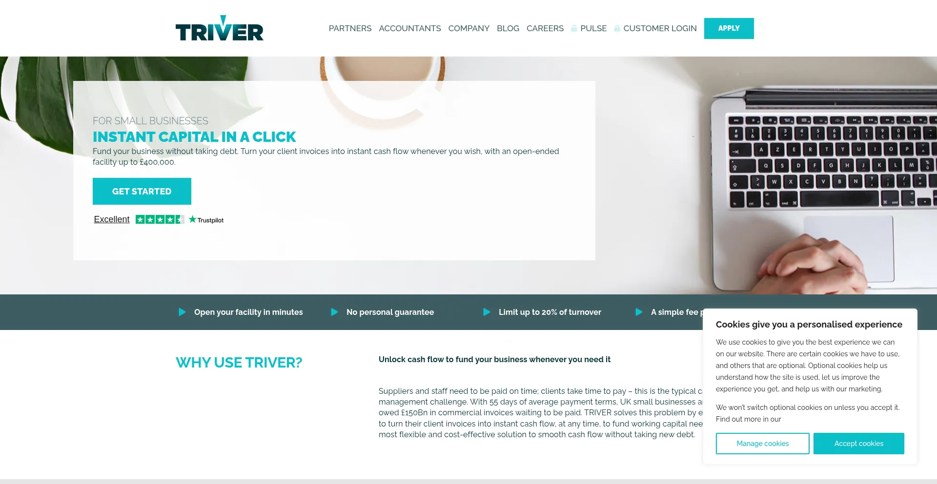 Advance your invoices. Get paid now. TRIVER gives you an open-ended facility up to 20% of your turnover, for FREE.