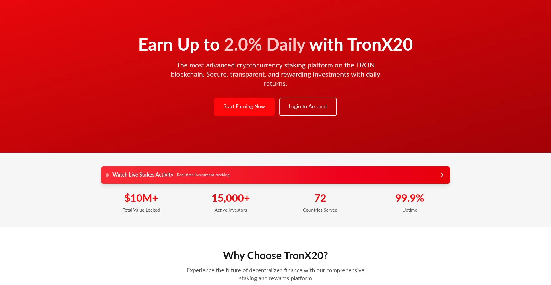 Tronx20.com operates as a suspicious website with multiple red flags that compromise its trustworthiness and user safety. The platform exhibits concerning characteristics including misleading information, questionable operational practices, or potential malware distribution that poses significant risks to visitors.