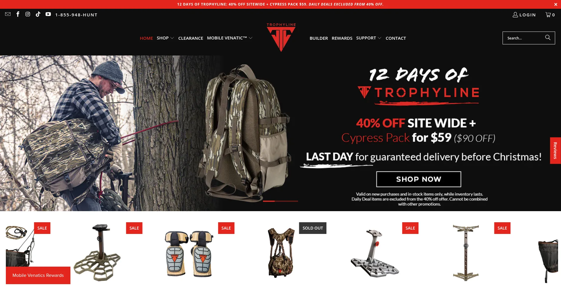 Trophyline Mobile and Saddle Hunting Gear -Hang With the Best! Experience the Freedom of Saddle Hunting with saddles, platforms, climbing sticks, and mobile hunting packs.