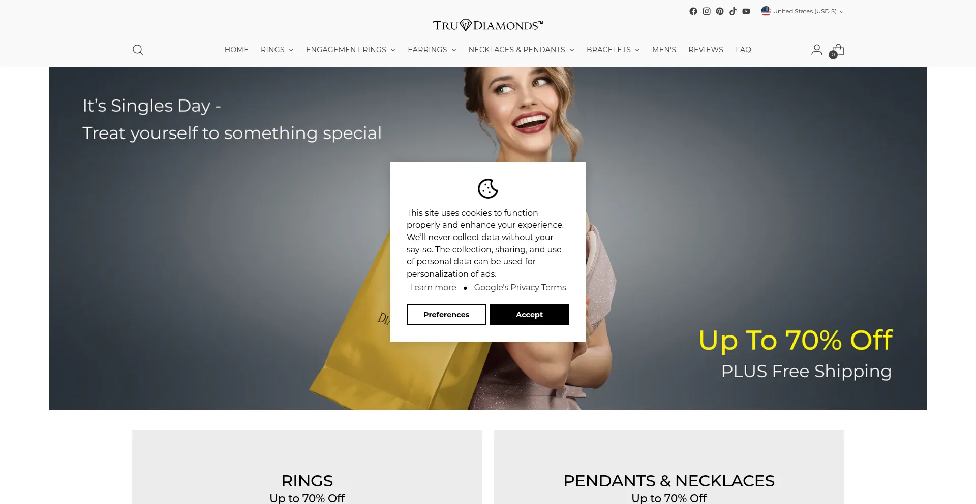 The website implements cookie consent mechanisms in compliance with privacy regulations such as GDPR or CCPA. This demonstrates that trudiamonds.com adheres to data protection standards and provides users with control over personal data collection practices.