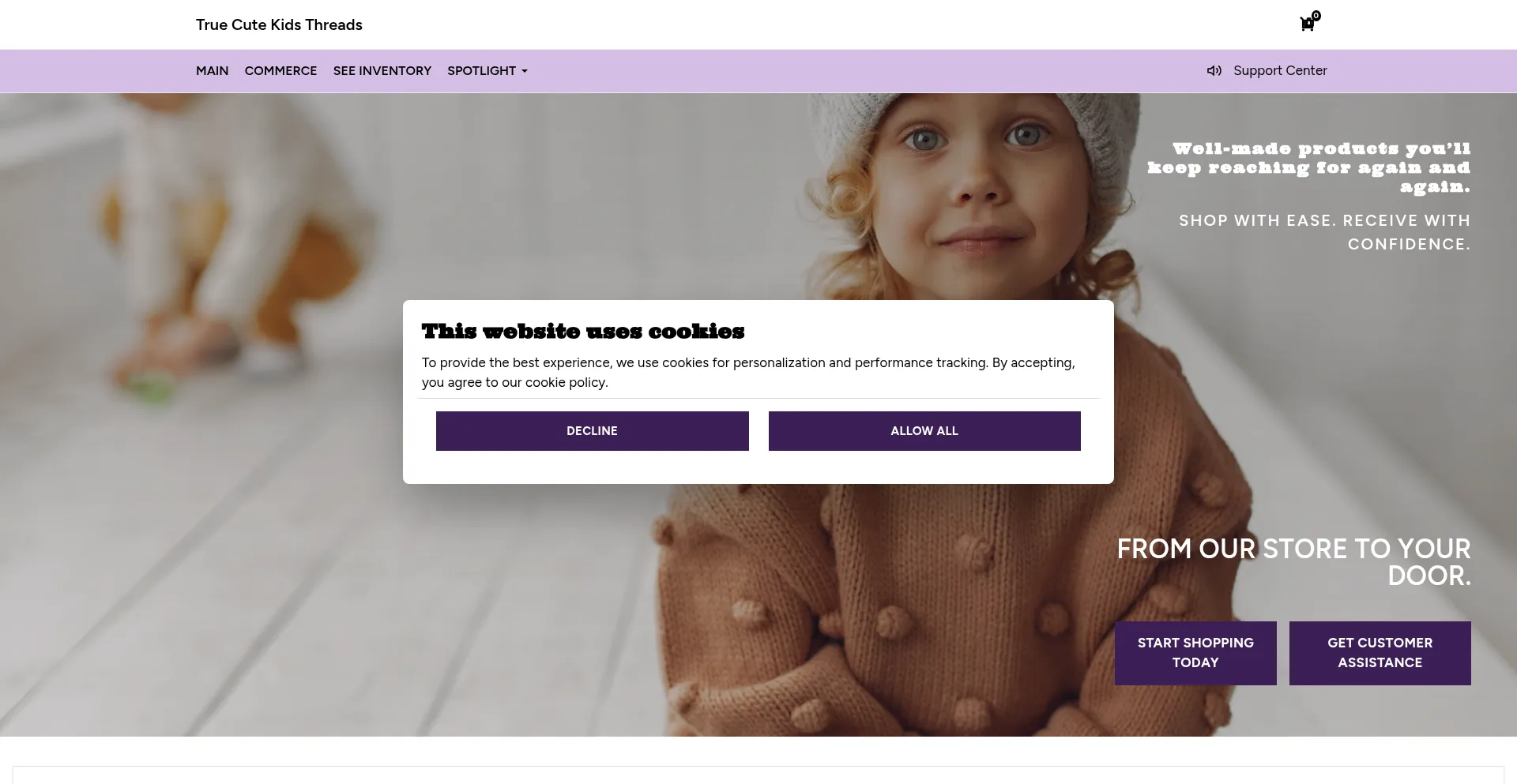 The website implements cookie consent mechanisms in compliance with privacy regulations such as GDPR or CCPA. This demonstrates that truecutekidsthreads.com adheres to data protection standards and provides users with control over personal data collection practices.