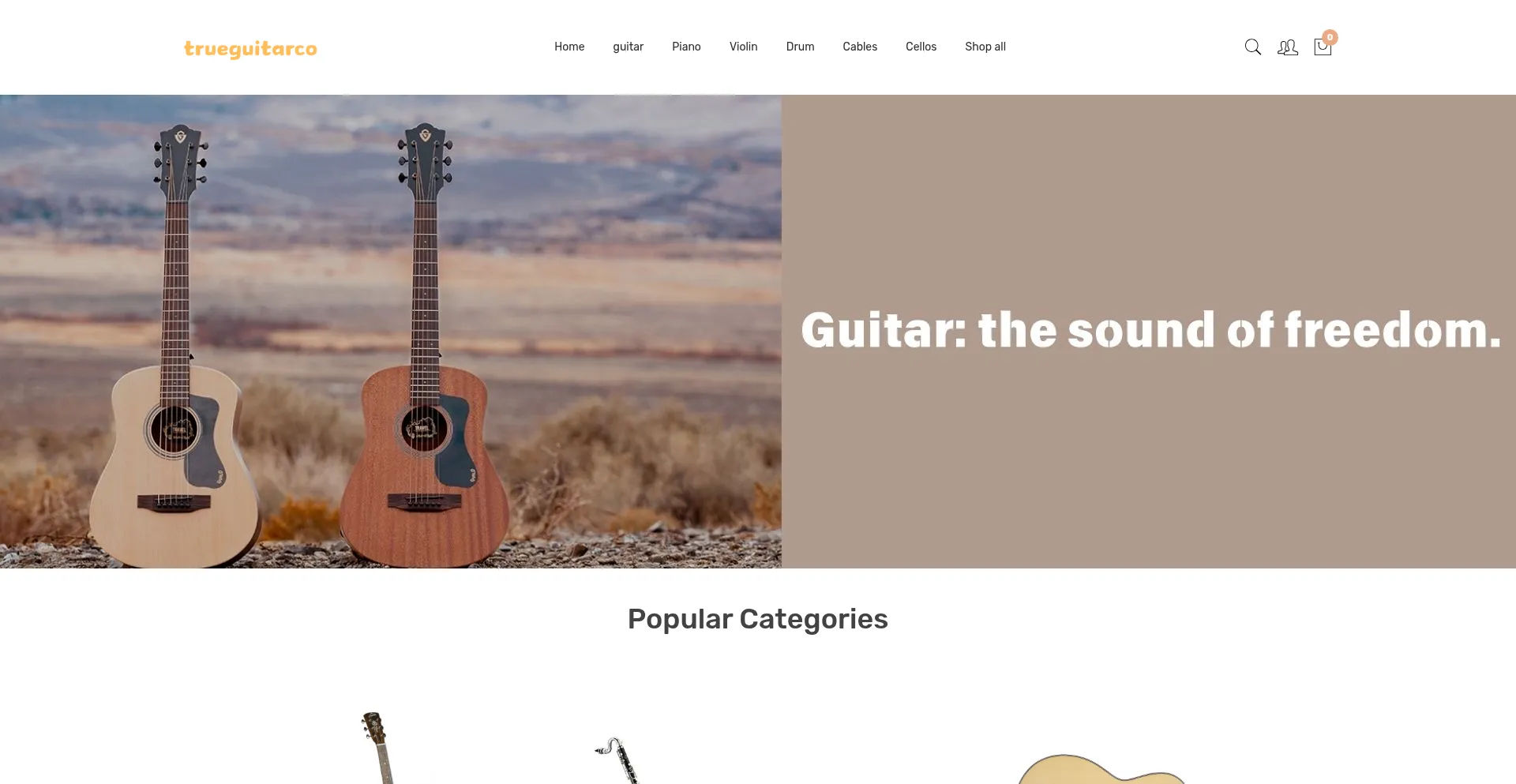 Analysis indicates that trueguitarco.com operates as an e-commerce platform facilitating online transactions for goods or services. The website implements shopping cart functionality, payment processing systems, and product catalog features typical of commercial retail operations.