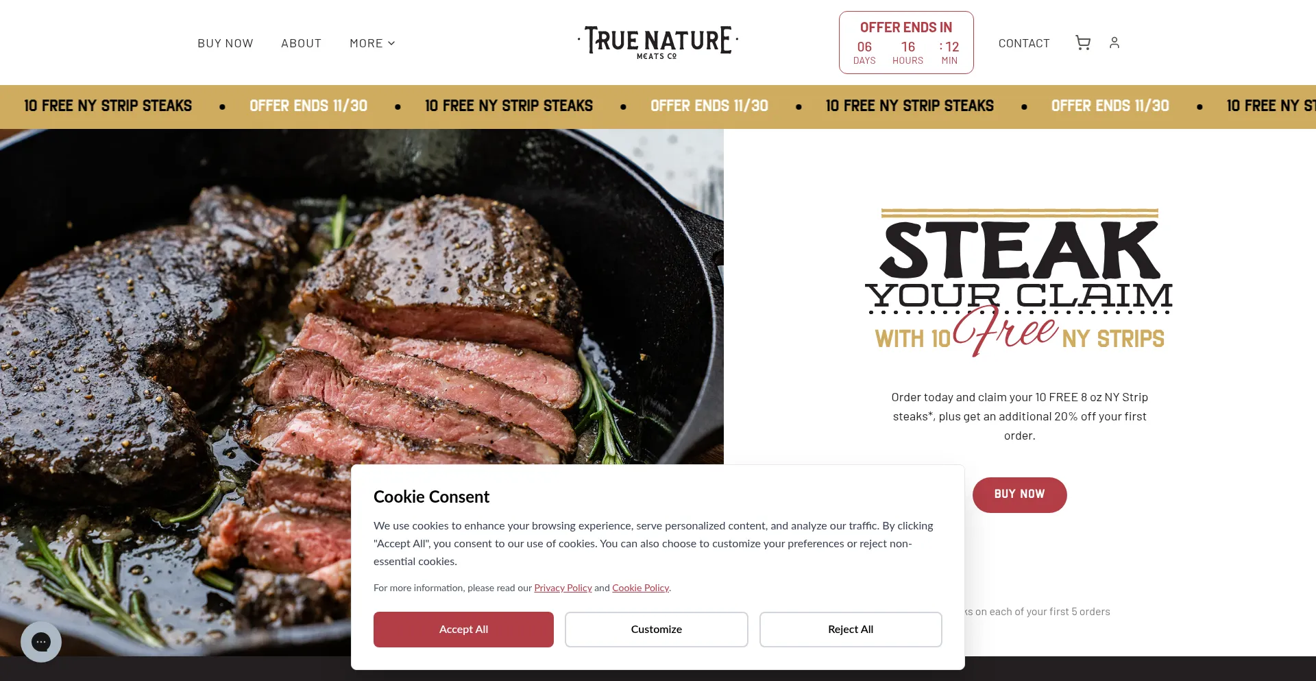 The website implements cookie consent mechanisms in compliance with privacy regulations such as GDPR or CCPA. This demonstrates that truenaturemeats.com adheres to data protection standards and provides users with control over personal data collection practices.