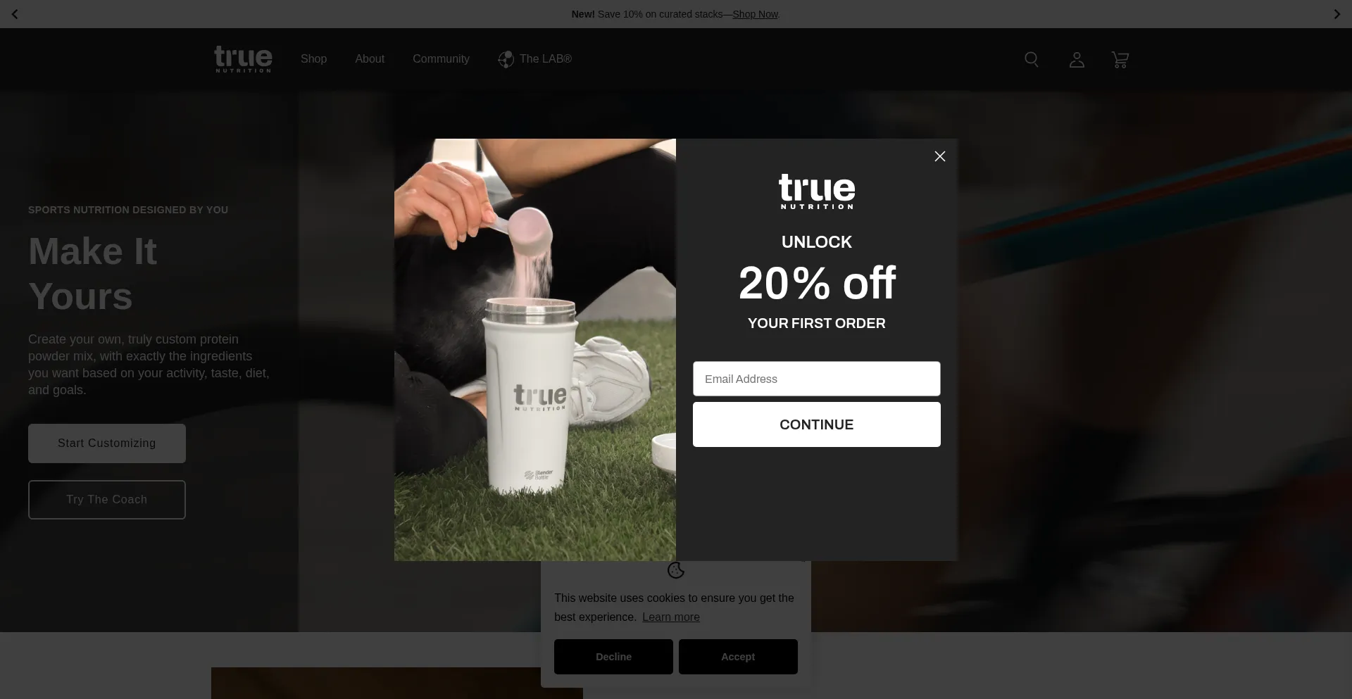 The website implements cookie consent mechanisms in compliance with privacy regulations such as GDPR or CCPA. This demonstrates that truenutrition.com adheres to data protection standards and provides users with control over personal data collection practices.