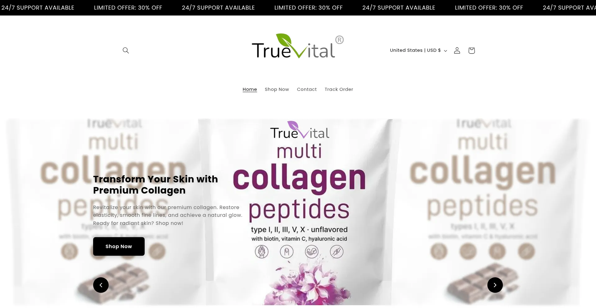 Analysis indicates that truevitalcollagen.store operates as an e-commerce platform facilitating online transactions for goods or services. The website implements shopping cart functionality, payment processing systems, and product catalog features typical of commercial retail operations.