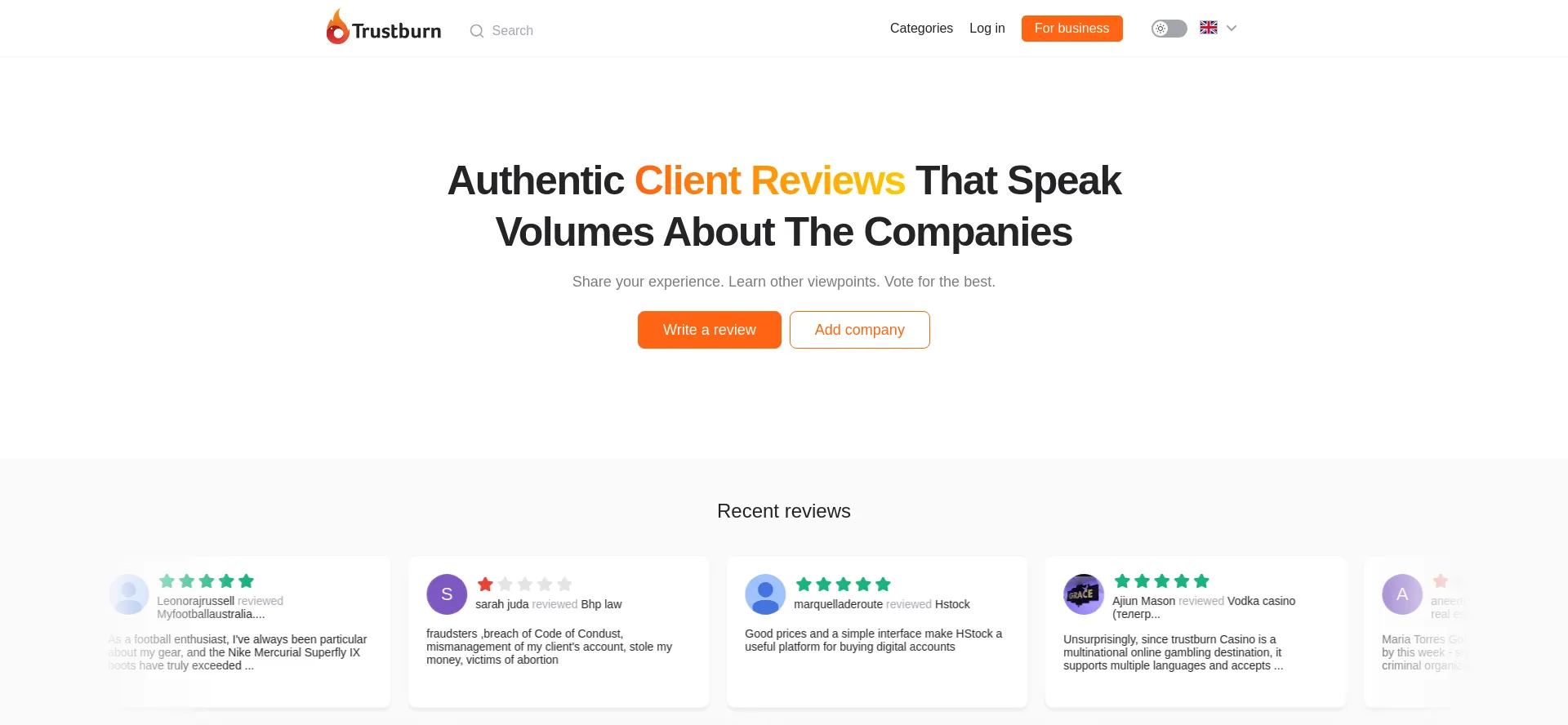 Trustburn - Read and Write Honest and Unbiased Company Reviews