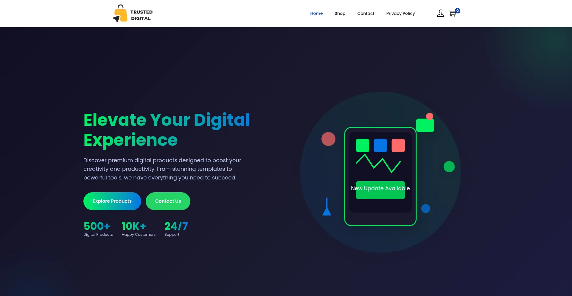 Analysis indicates that trusteddigital.shop operates as an e-commerce platform facilitating online transactions for goods or services. The website implements shopping cart functionality, payment processing systems, and product catalog features typical of commercial retail operations.