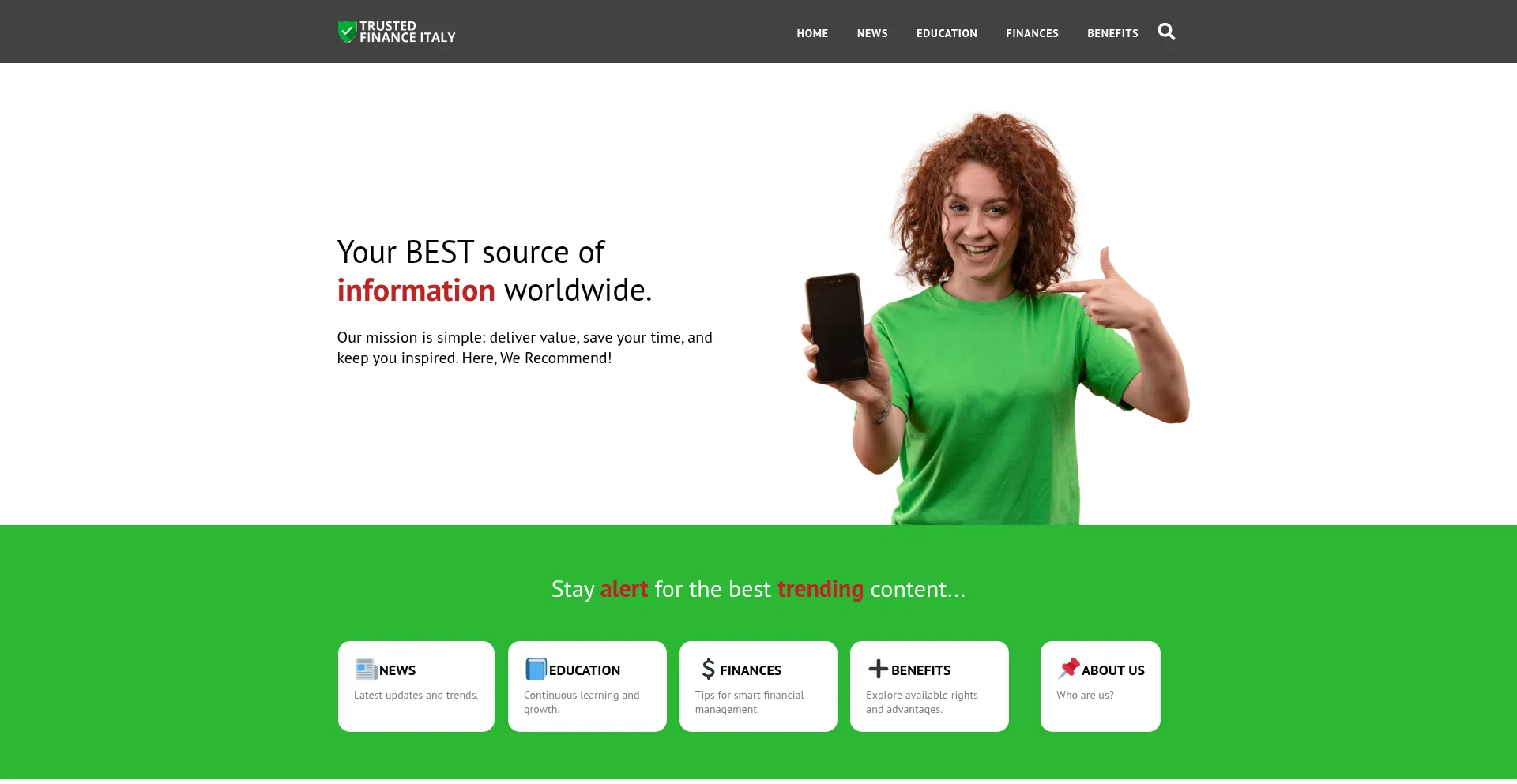 The trustedfinanceitaly.com website employs search engine optimization (SEO) techniques to improve its visibility and ranking in search engine results pages (SERPs).