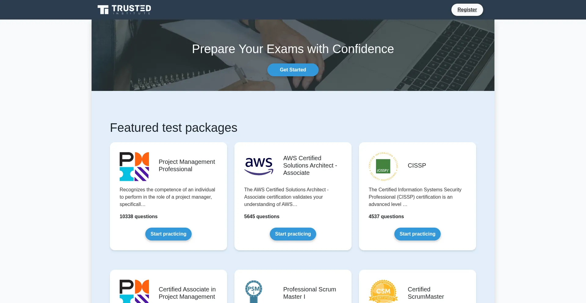 Prepare for your exams and certifications with confidence. TrustEd offers a wide range of practice questions and exams to help you succeed.