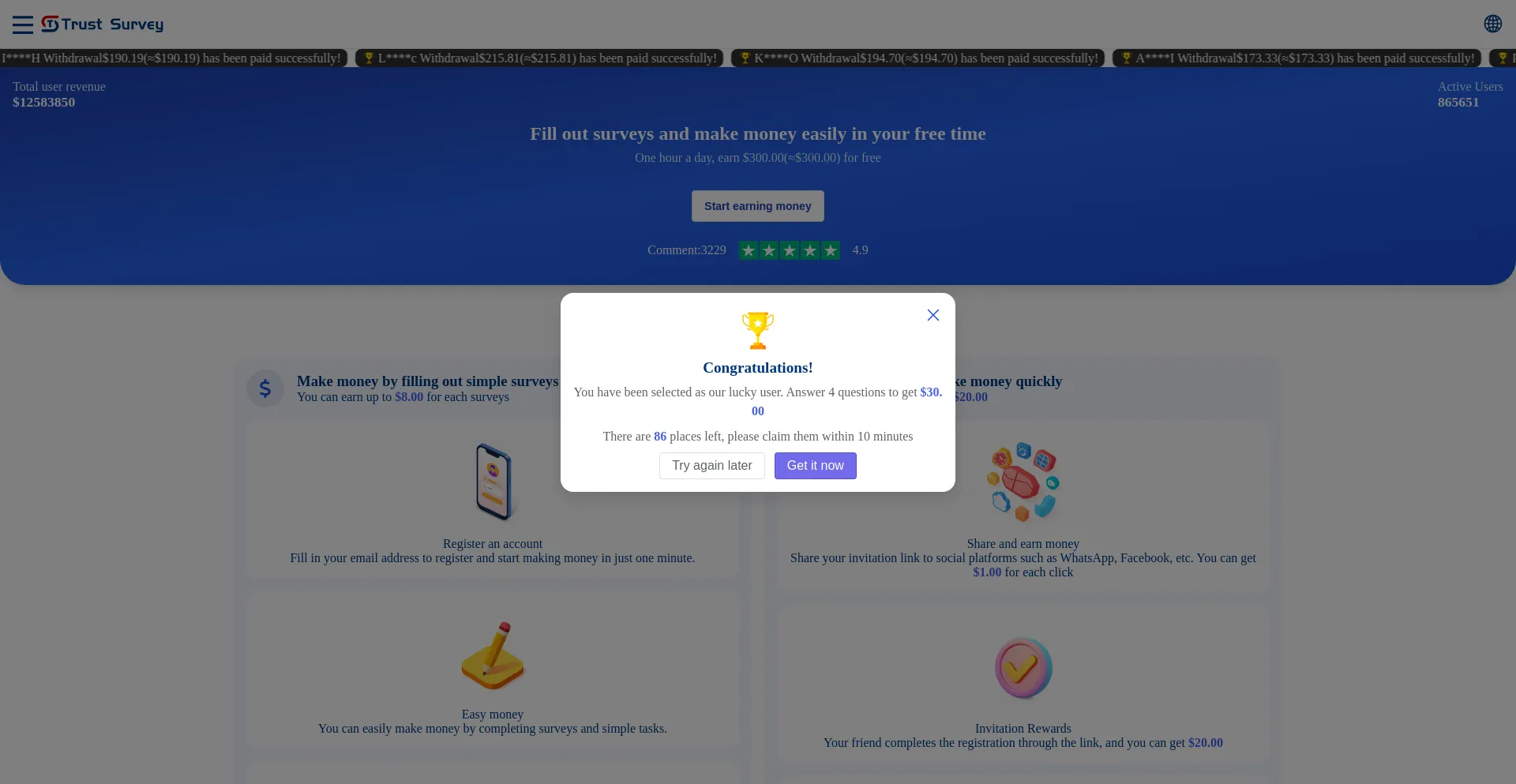Trustfsurvey.top Reviews: Unsettled Website | Check if site is scam or legit