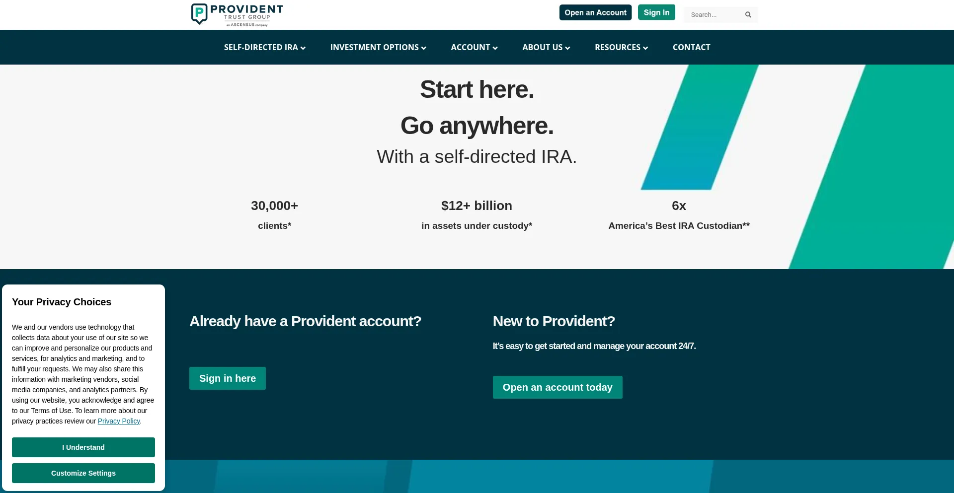 The trustprovident.com website uses Google Tag Manager to add and update tracking tags on its website.