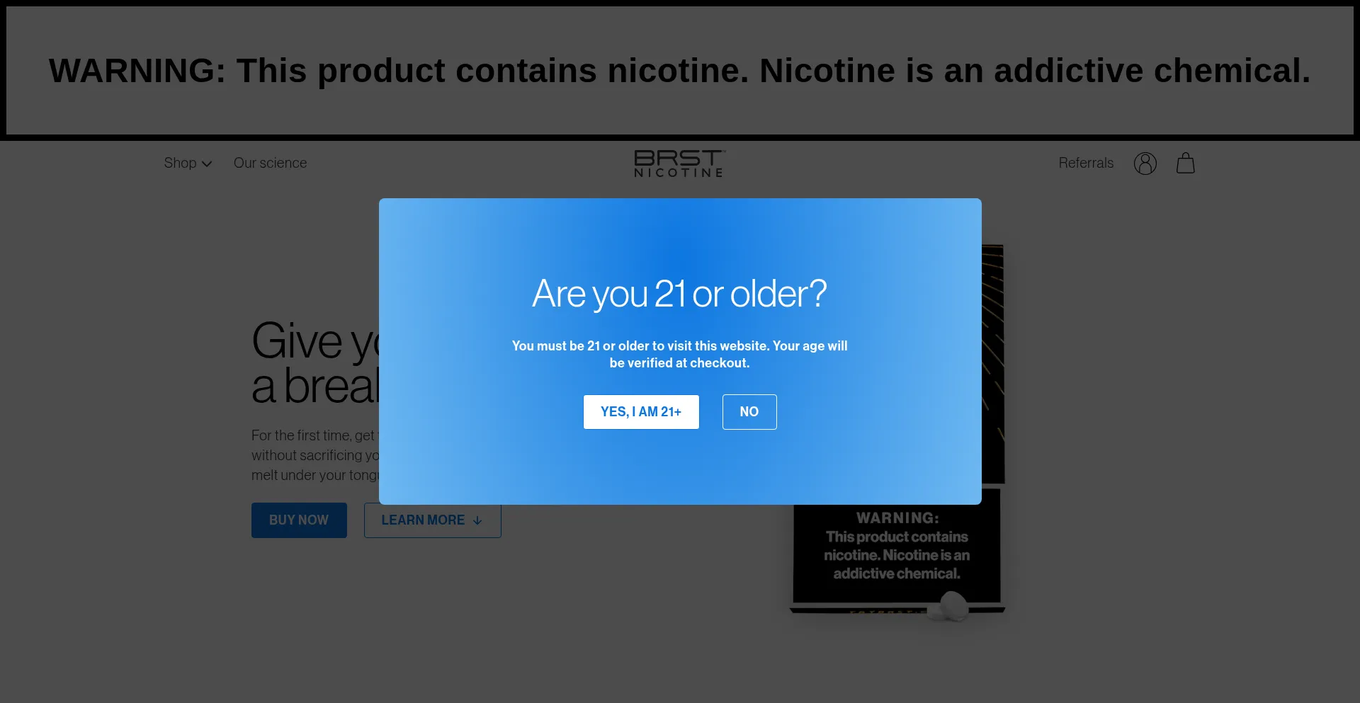 The trybrst.com website uses Google Tag Manager to add and update tracking tags on its website.