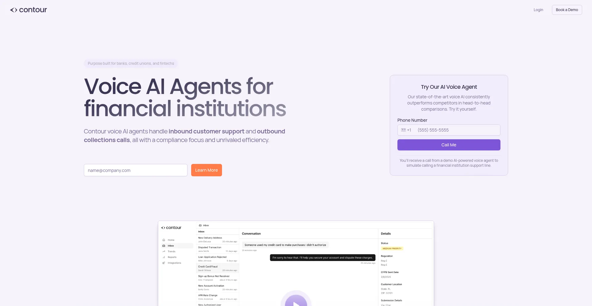 Purpose-built for banks, fintechs, and credit unions. AI customer support that handles voice and chat conversations with deep banking knowledge and built-in compliance guardrails.