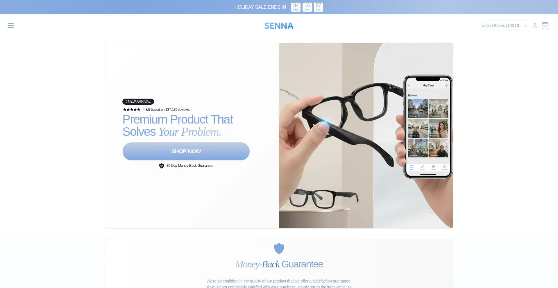 Our analyzer determines that website trysenna.store is using Shopify CMS. Shopify is a popular e-commerce platform, powering around 4.4% of websites globally.