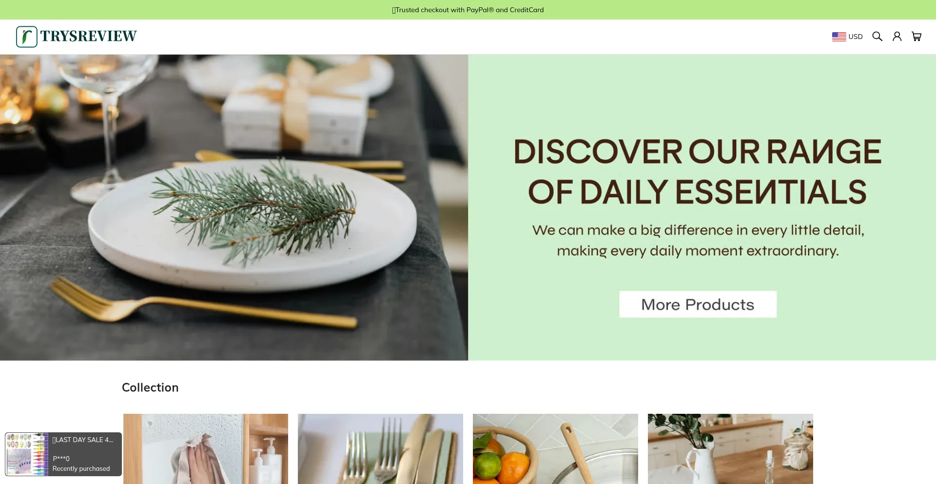 Trysreview.com exhibits characteristics consistent with scam-like e-commerce operations. The site appears to accept payments while customer reports suggest data collection issues.